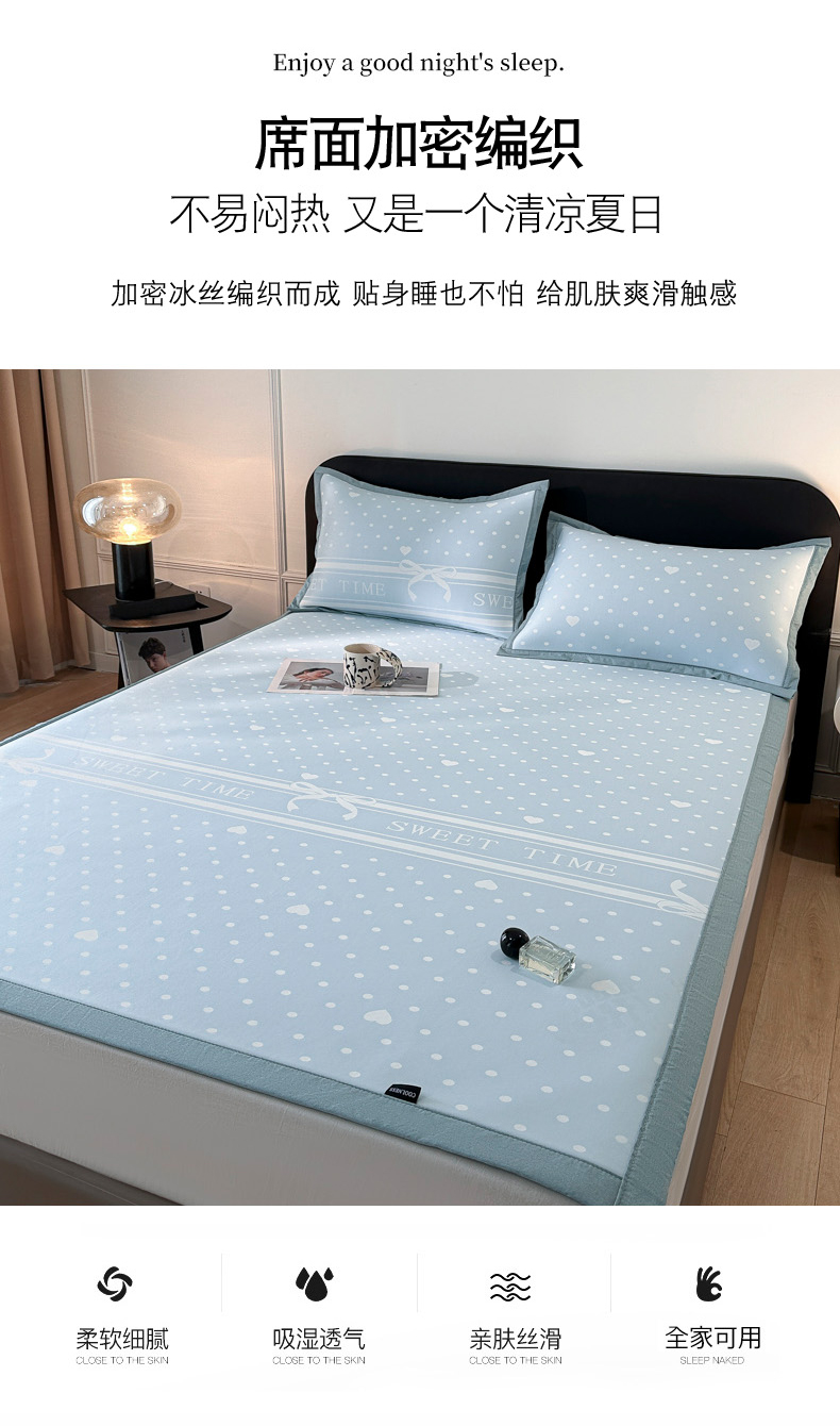 (总)慕尚家纺 2025春夏新款凉感冰丝提花凉席三件套,爱心圆点,海棠 粉,海棠 灰,海棠 蓝,花艺 红绿,花艺 灰红,花艺 灰绿,花艺 咖白,花语 灰,花语 蓝,花语 绿,水仙 粉,水仙 灰,水仙 蓝,水仙 绿,提花席 花香蓝,提花席 玫瑰之恋,提花席 棋盘格绿,提花席 树叶绿,提花席 直线绿,烟粉