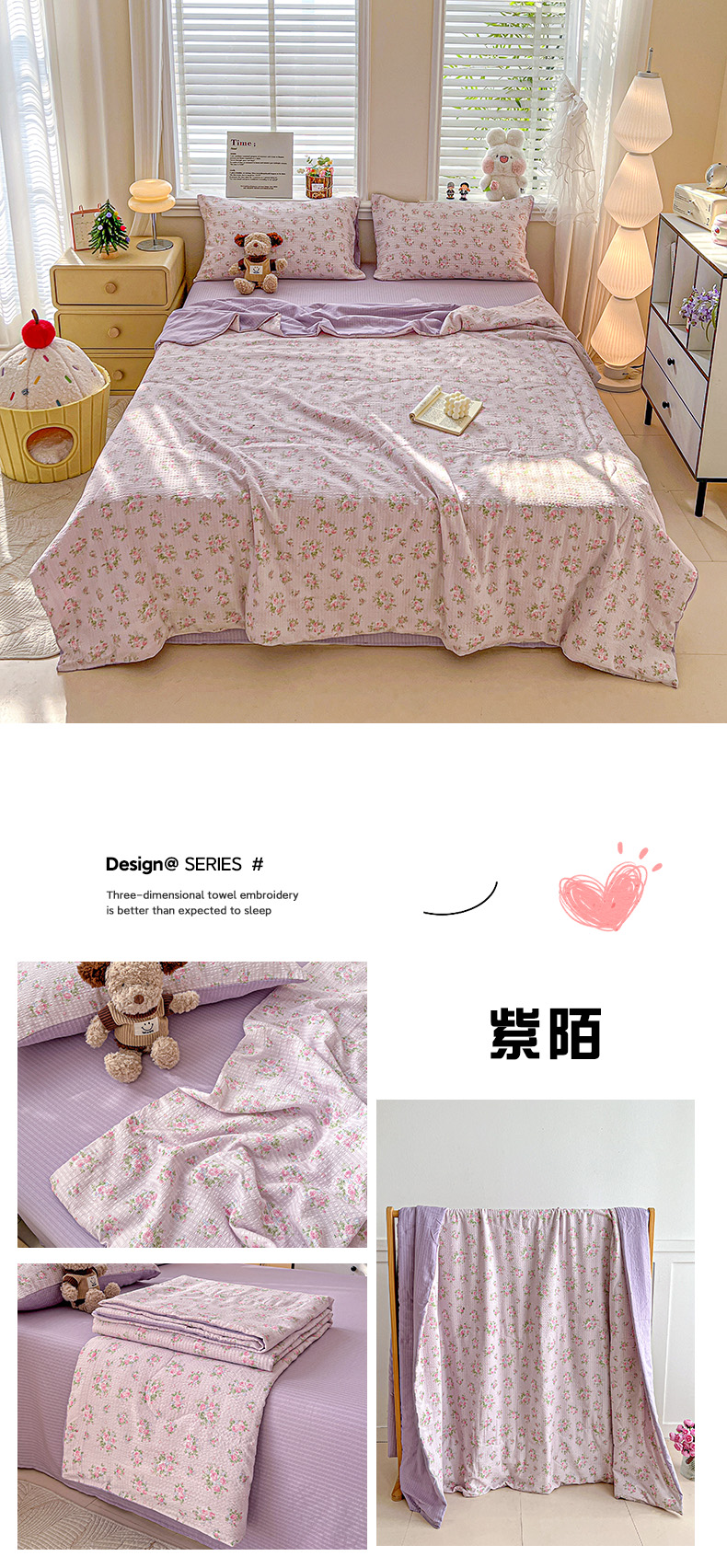 (总)王朝国际 2026新款A类彩竺棉印花夏被四件套,爱心蝶,安妮兔,海洋之心,蝴蝶结,花与兔,兰亭,蓝墨,蓝胖子,萌狮花境,莫奈紫,木兮枝,奶蓝泡芙,奶油派,七里香,小欢喜,小乔玫瑰,小兔子,星星仔,幸运草,樱桃狗,芝士奶盖,紫爱心,紫陌,紫苏