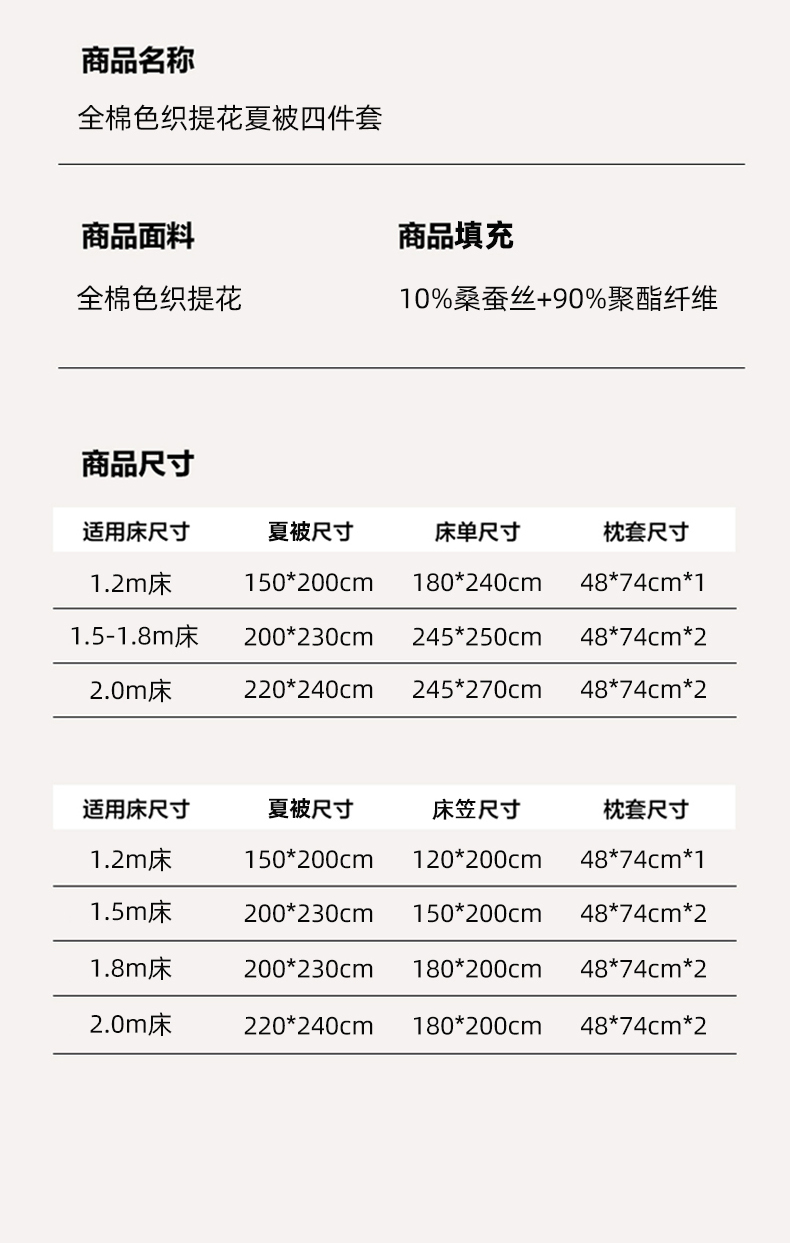 • 适用季节: 空调被/夏凉被