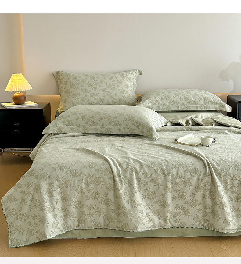 当前位置: 91家纺网 > 商品网购 > 被子 > 夏被 > 禾时 2026春夏新品色织提花夏被夏凉被空调被四件套(配全棉纱布) 艾莉(浅绿)