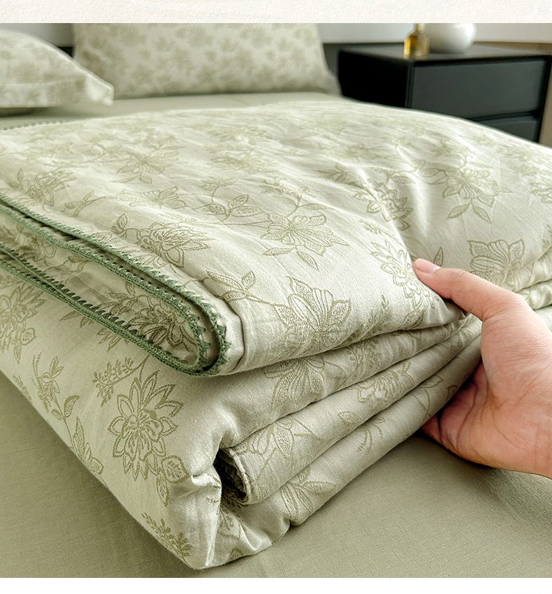 • 91家纺网 家纺一手货源 找家纺 禾时 2026春夏新品色织提花夏被夏凉被空调被四件套(配全棉纱布) 艾莉(浅绿)
