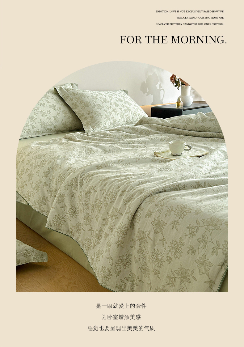 • 91家纺网 家纺一手货源 找家纺 禾时 2026春夏新品色织提花夏被夏凉被空调被四件套(配全棉纱布) 艾莉(浅绿) 91家纺网 家纺一手货源 找家纺 禾时 2026春夏新品色织提花夏被夏凉被空调被四件套(配全棉纱布) 艾莉(浅绿)
