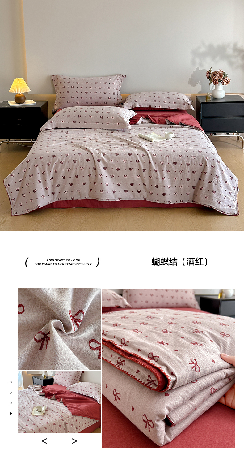 • 91家纺网 家纺一手货源 找家纺 (总)禾时 2026春夏新品色织提花夏被夏凉被空调被四件套(配全棉纱布),艾莉(浅绿),艾莉(紫),蝴蝶结(酒红),蝴蝶结(咖色),轻舞飞扬(粉),轻舞飞扬(兰)