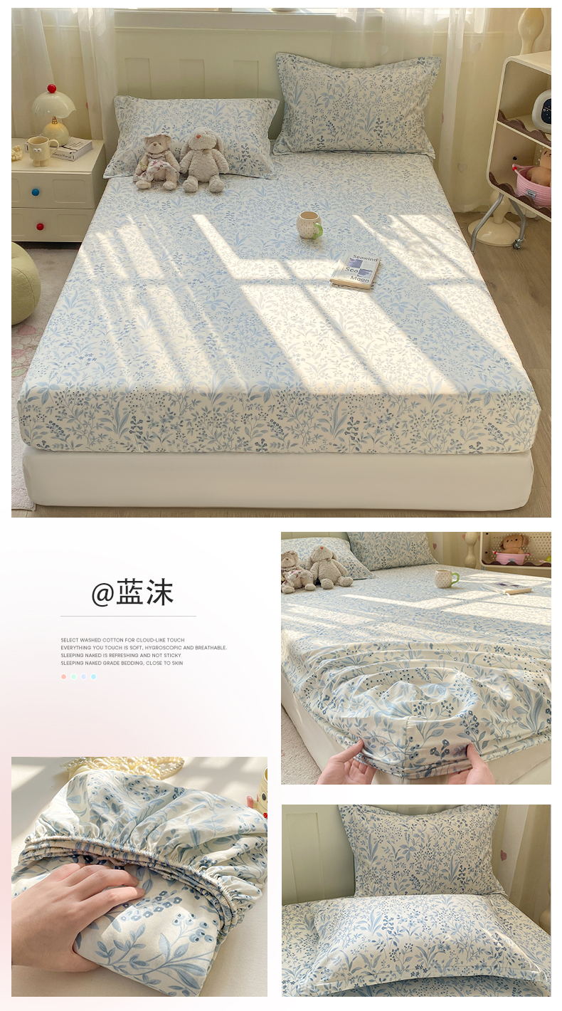 商品名称:女子家纺 2026新款全棉纯棉印花小印花花卉款单床笠床笠单件 微花耳耳蓝