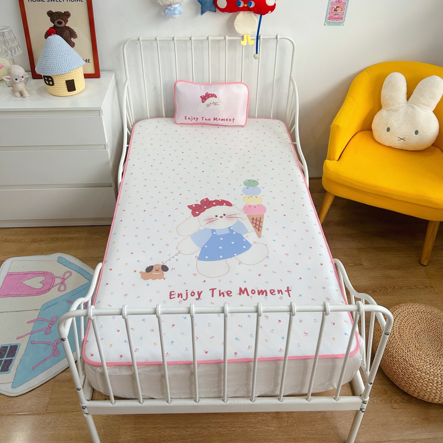 商品名称:美乐迪家纺 2026新款儿童水光冰丝凉席席子凉席 兔头小猫