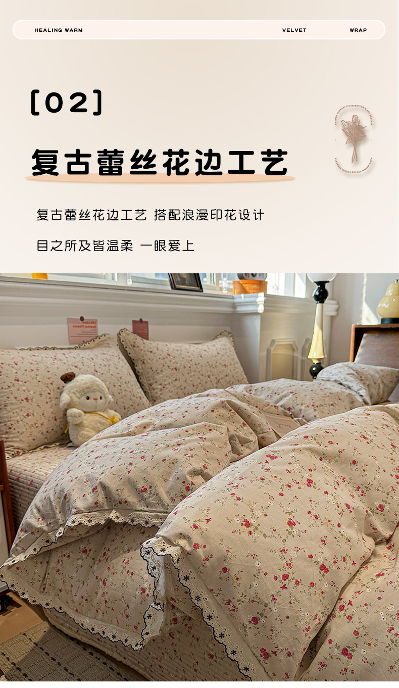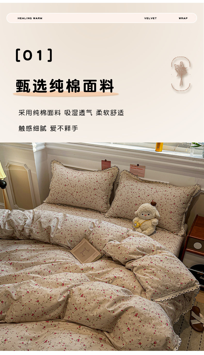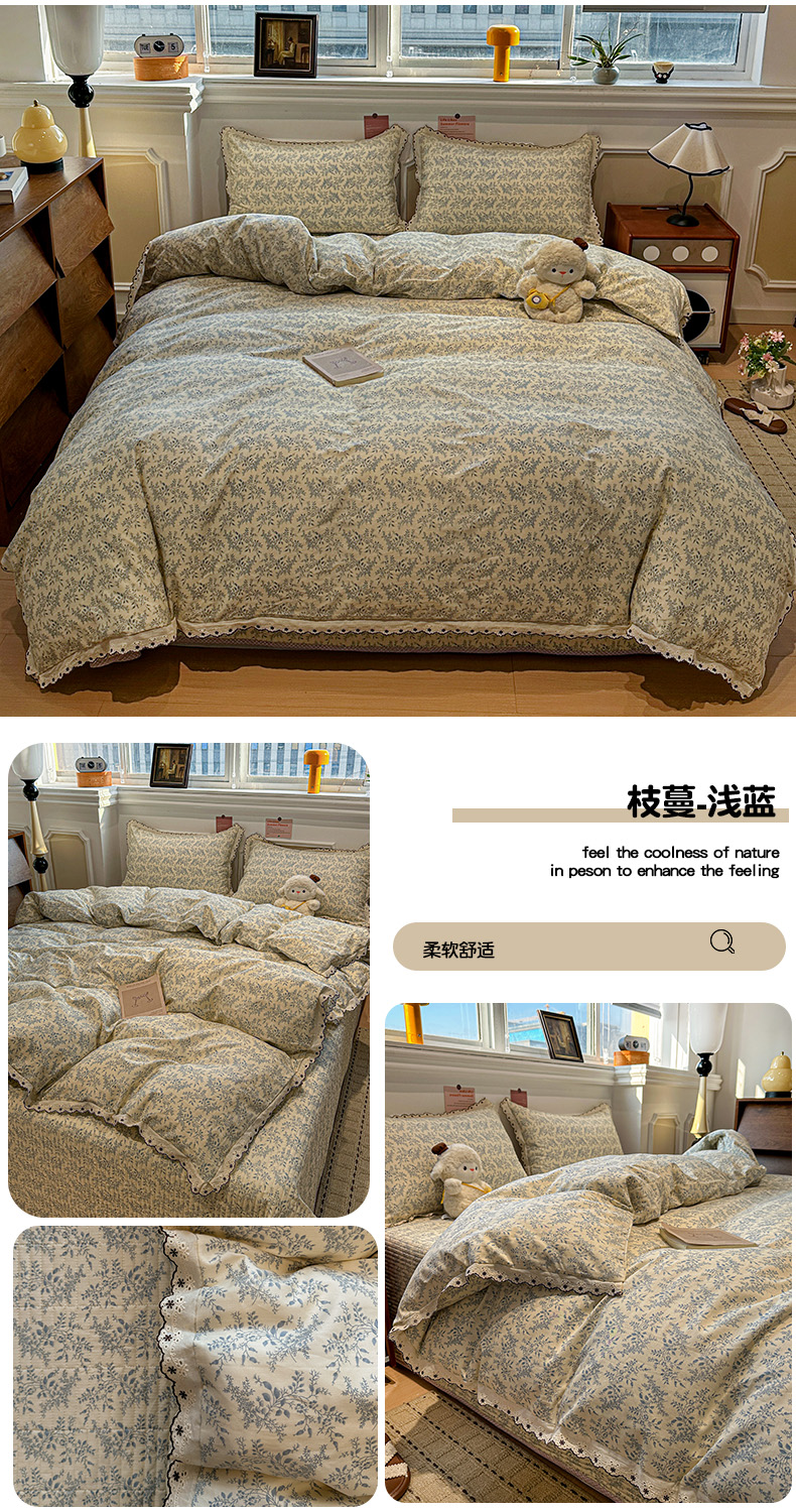 (总)橙子家居 2025新款小清新全棉纯棉花边款床单四件套,春风里-紫,琥珀流光,蓝心兔,玲娜,梦幻花园兔,舒芙蕾,甜甜夏日,芋泥啵啵