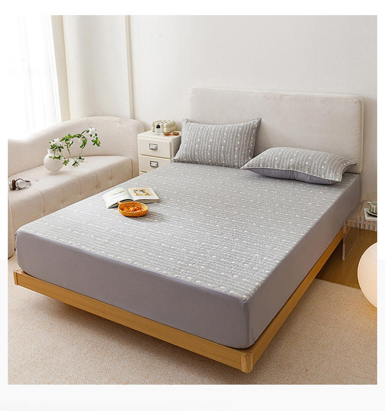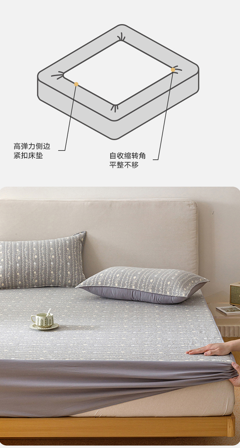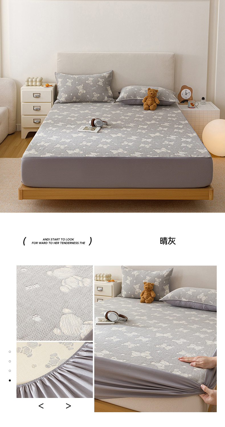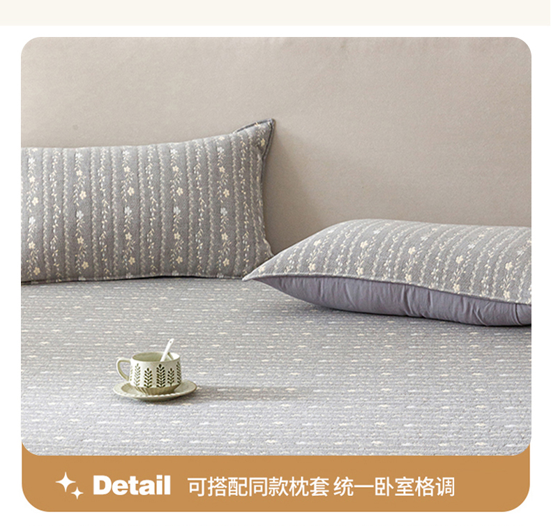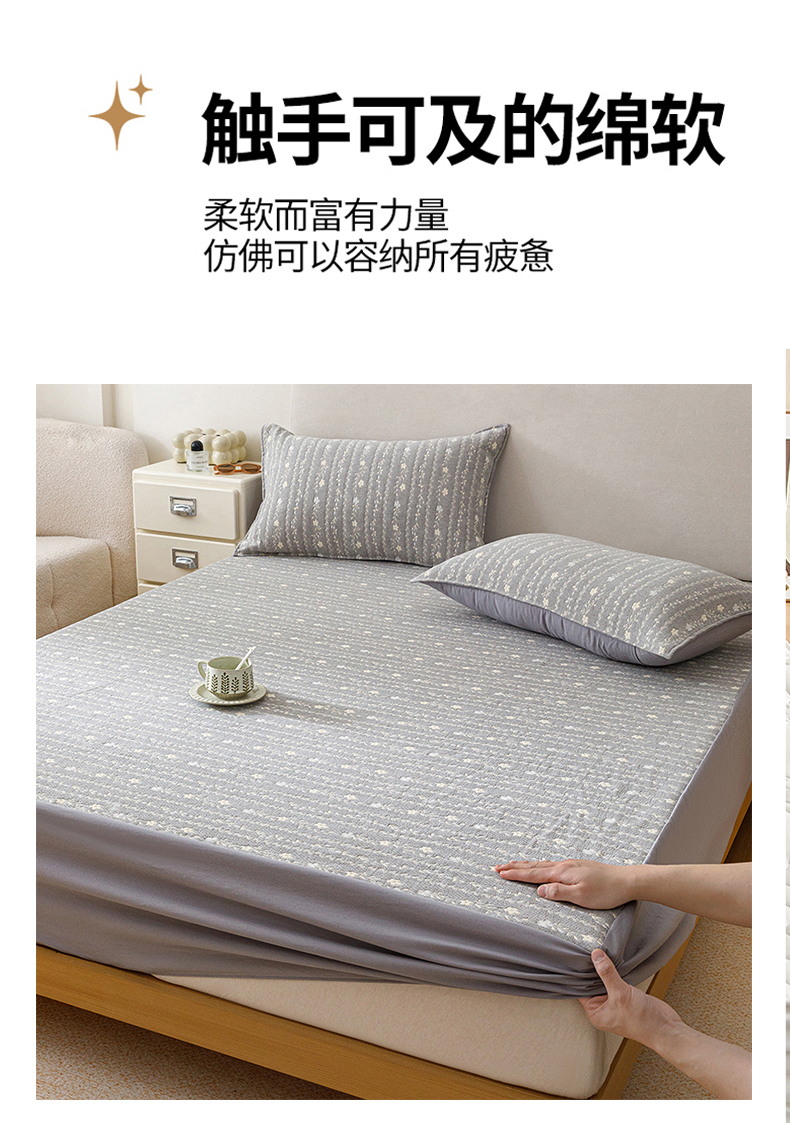 商品名称:悦然毛巾被 2026新款水洗三层纱布全棉床笠套件床单夹棉床罩A类单床笠床笠单件 空境灰