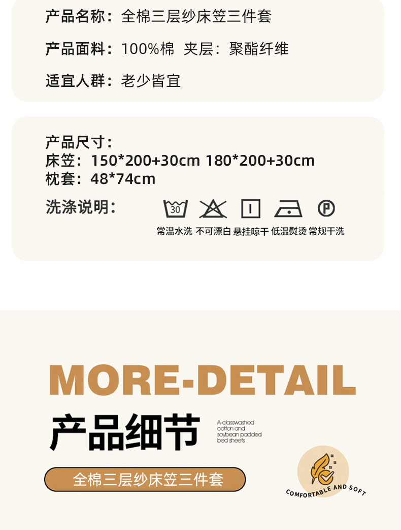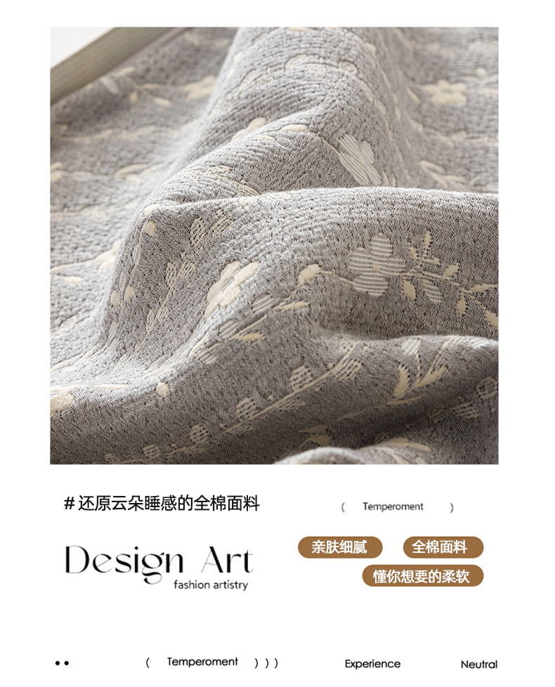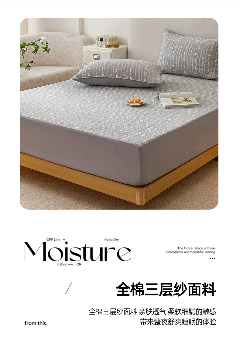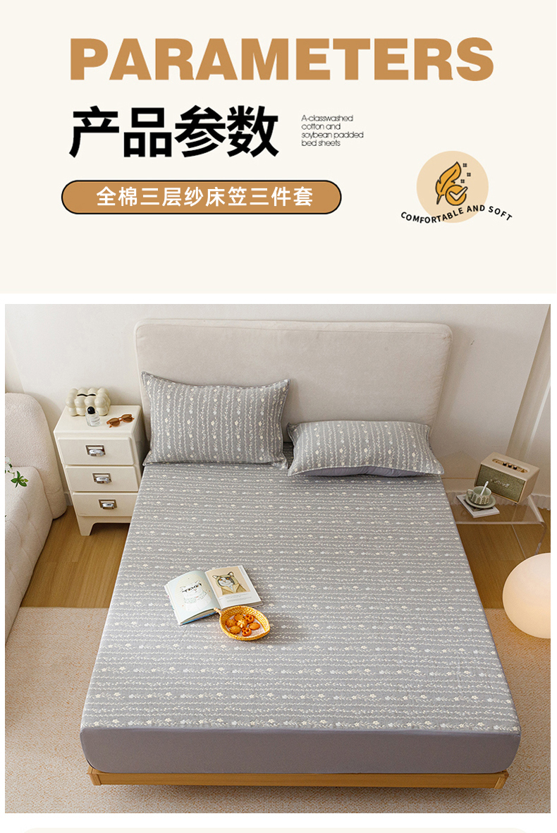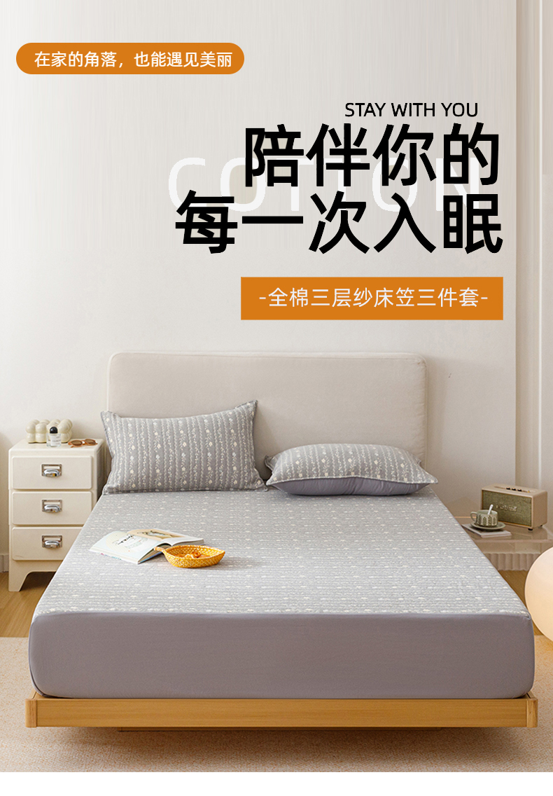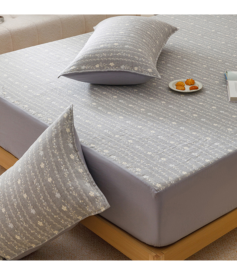 商品名称:悦然毛巾被 2026新款水洗三层纱布全棉床笠套件床单夹棉床罩A类单床笠床笠单件 空境灰