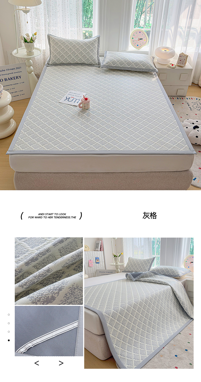 (总)小萌虎 2025新款冰豆豆凉席 凉席款,粉玉,果绿,灰色,咖色,浅蓝,深蓝