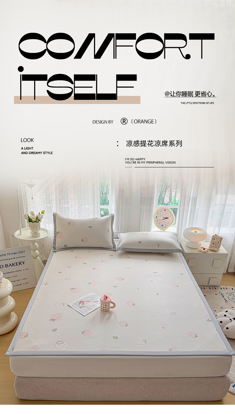 (总)小萌虎 2025新款PE高分子凉感大提花凉席席子,爱意,罗马,梦境-粉,梦境-灰,轻奢,山水