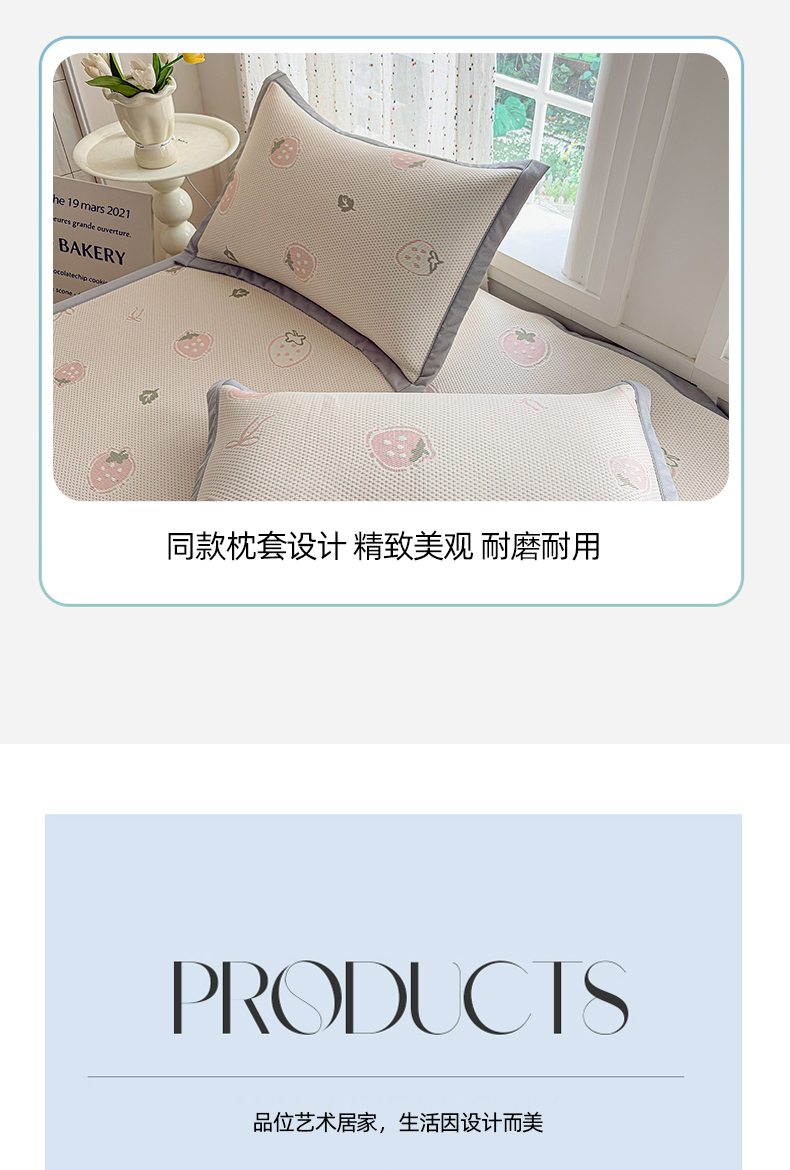 (总)小萌虎 2026年新款乙纶PE提花冰豆豆凉席床笠款卡通,草莓粉,彩虹粉,灰格,腊肠犬-咖,腊肠犬-蓝,小美熊,摇摇马-粉,摇摇马-蓝