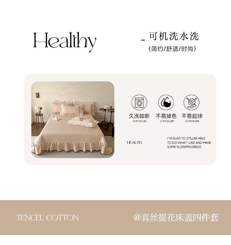 (总)迪梦姿家纺 2026新款春意真丝提花床盖四件套,粉玉,天空兰,香槟,抹茶绿,奶白,豆沙