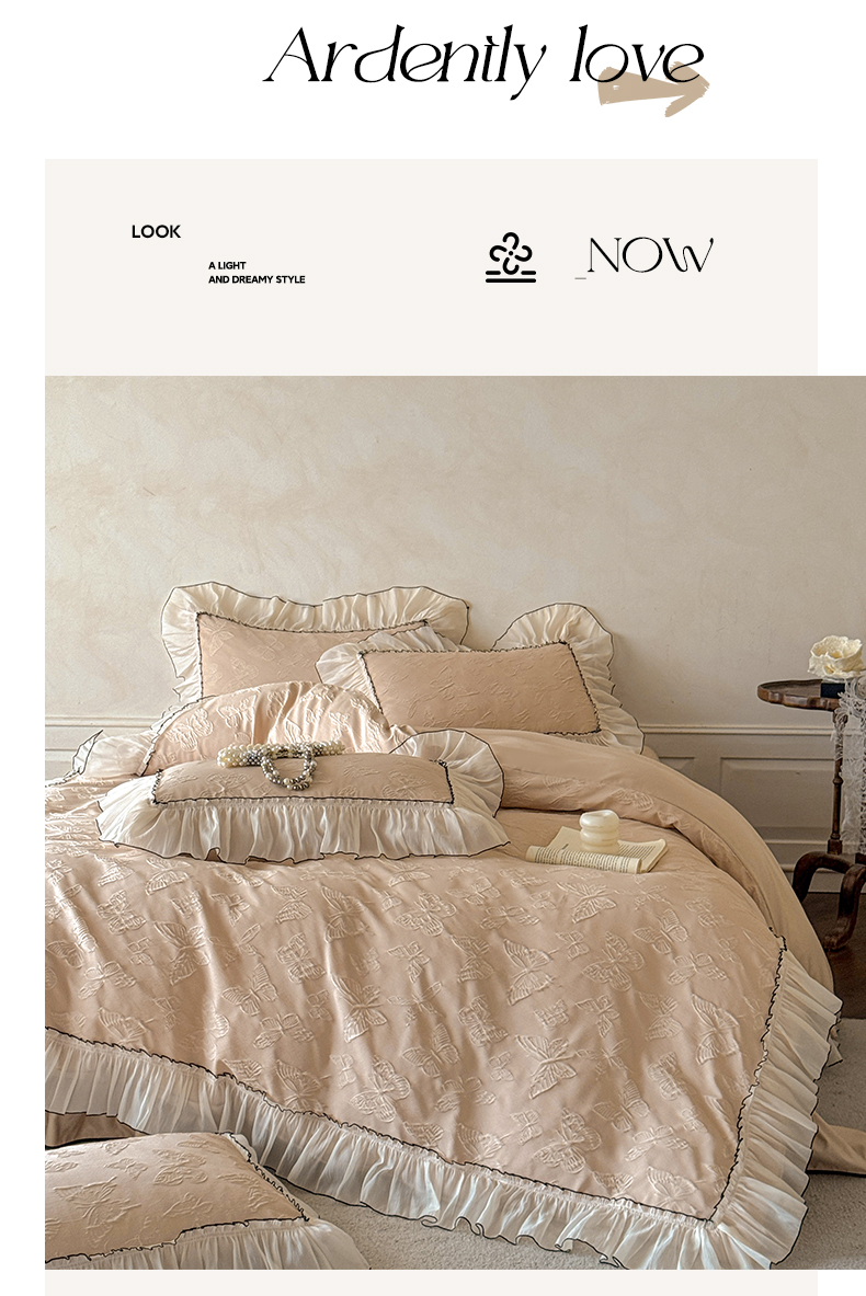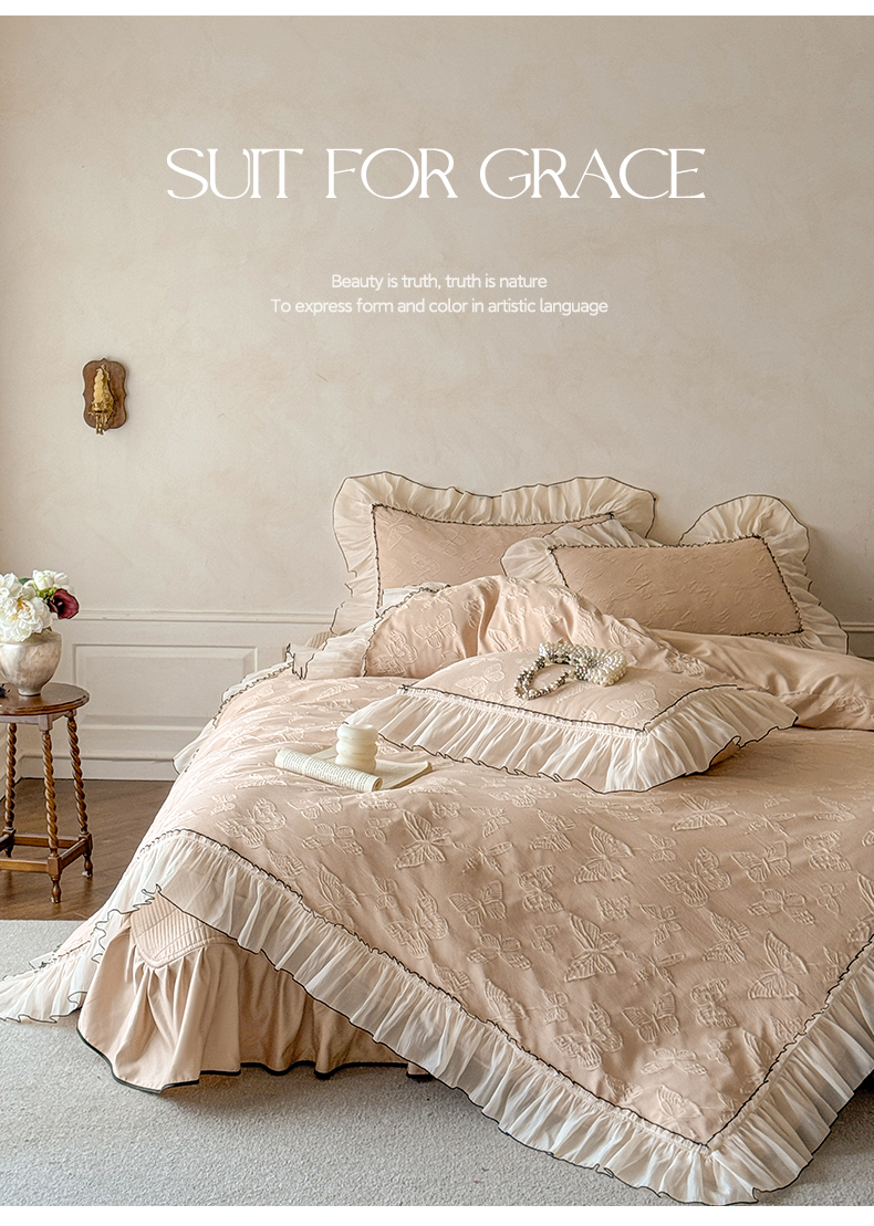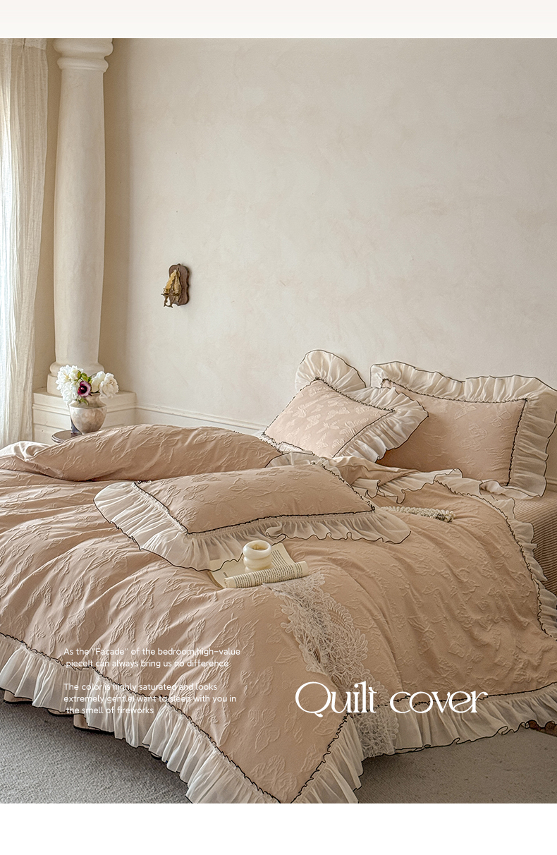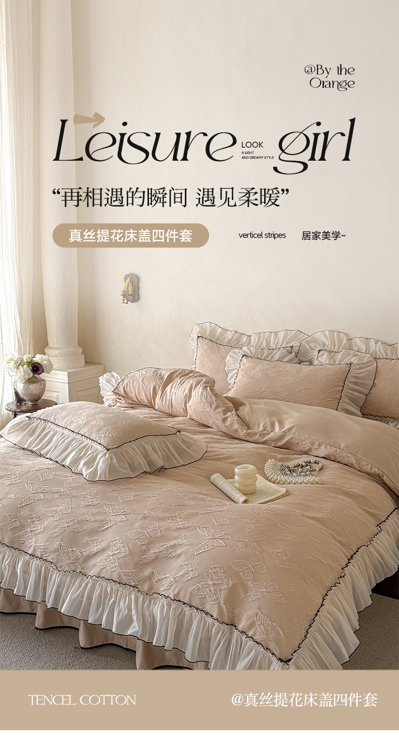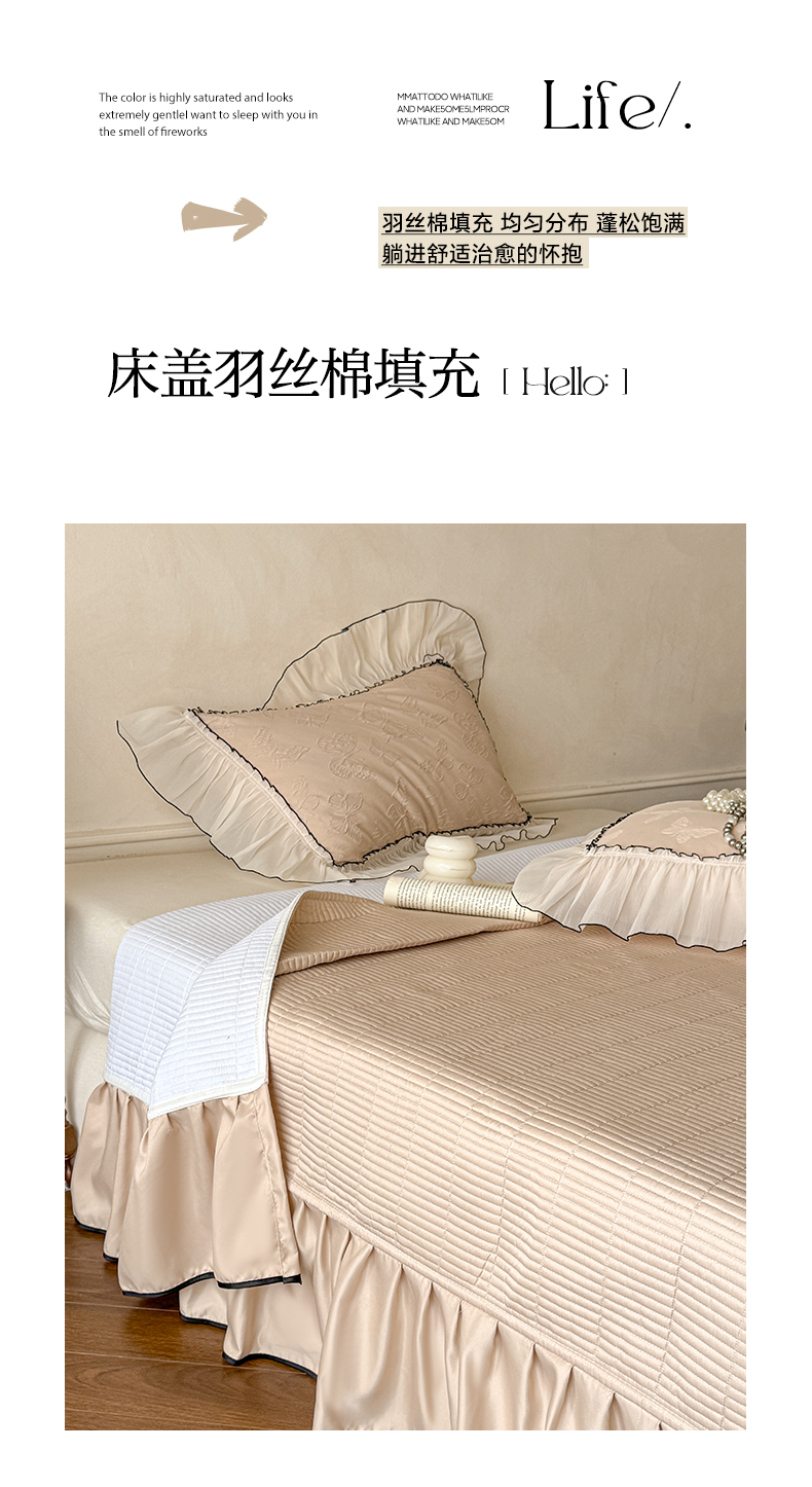 (总)迪梦姿家纺 2026新款春意真丝提花蕾丝款夏被四件套,豆沙,粉玉,抹茶绿,奶白,天空兰,香槟