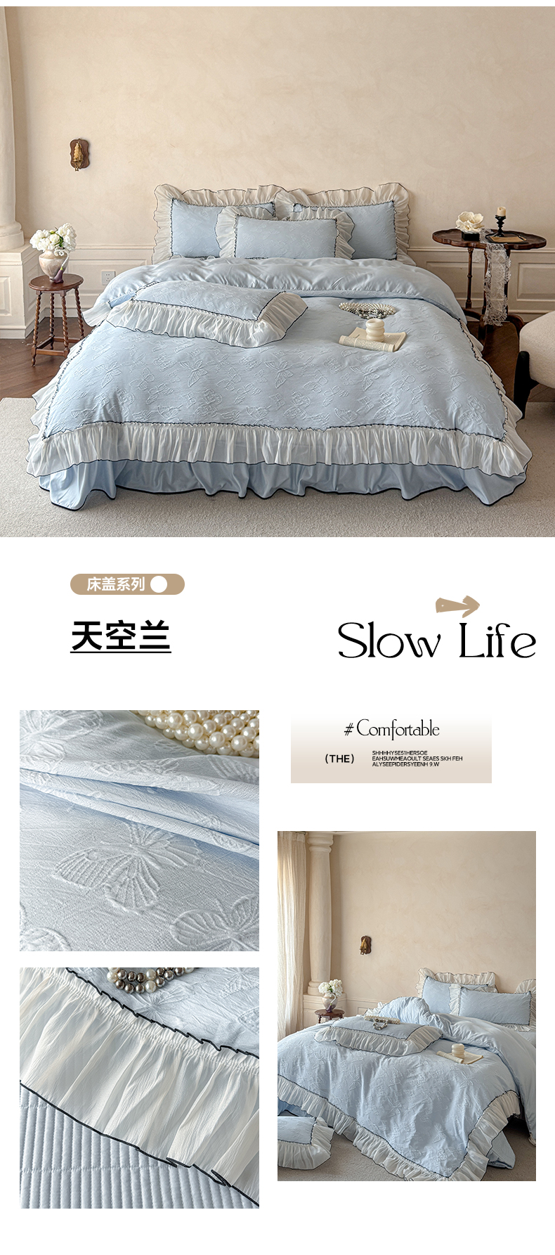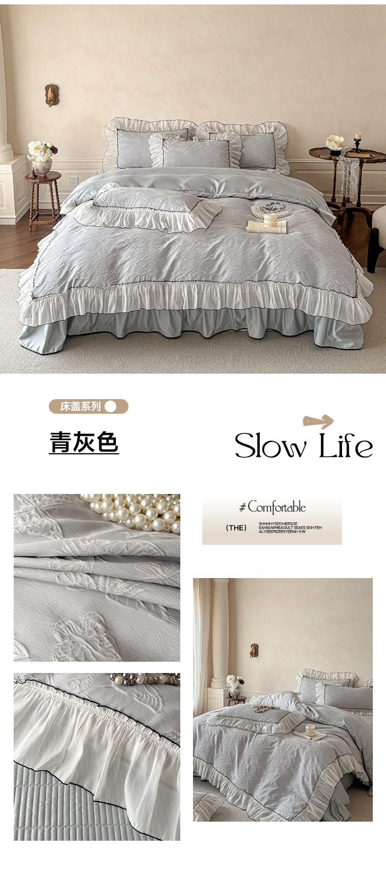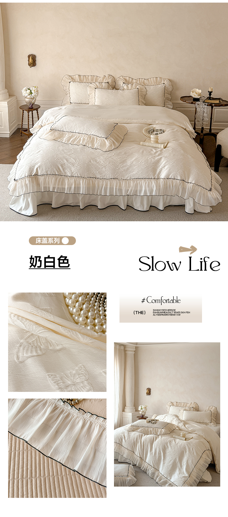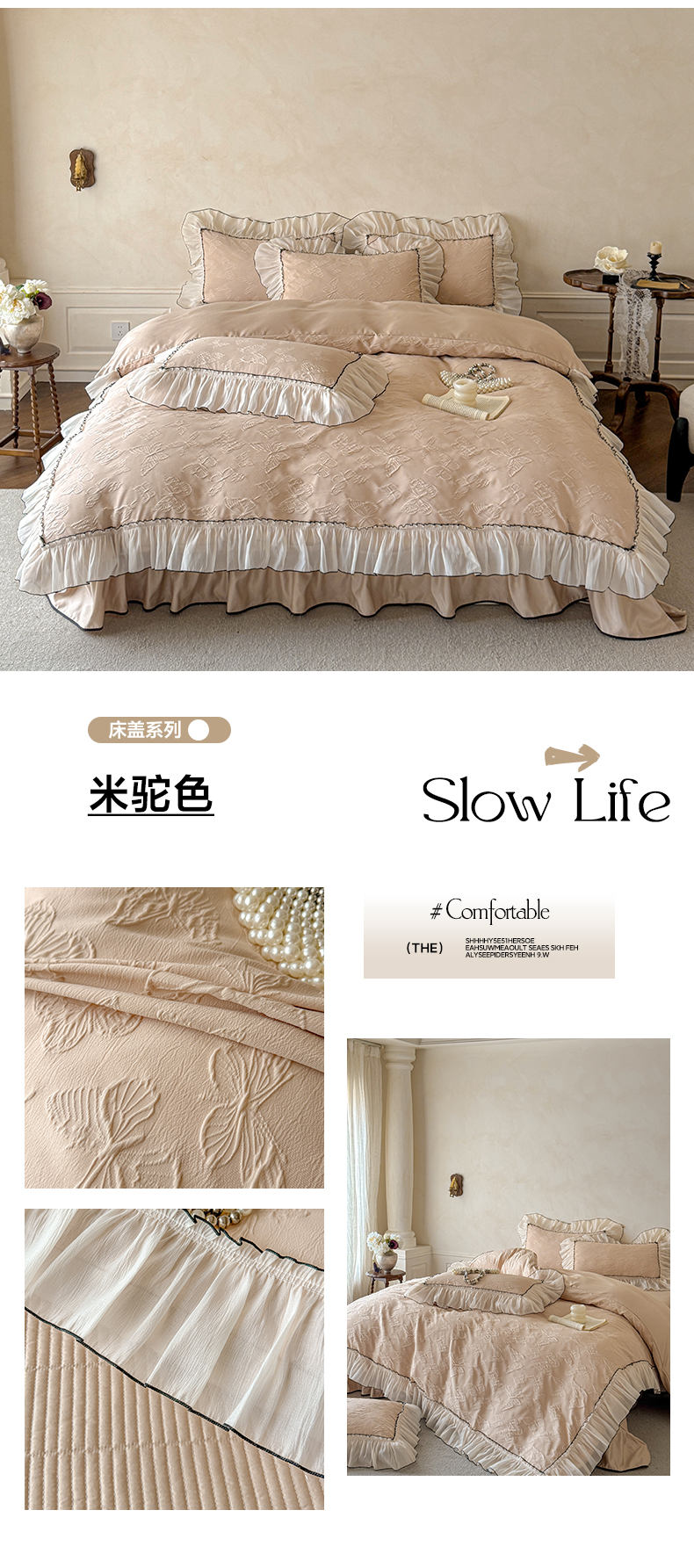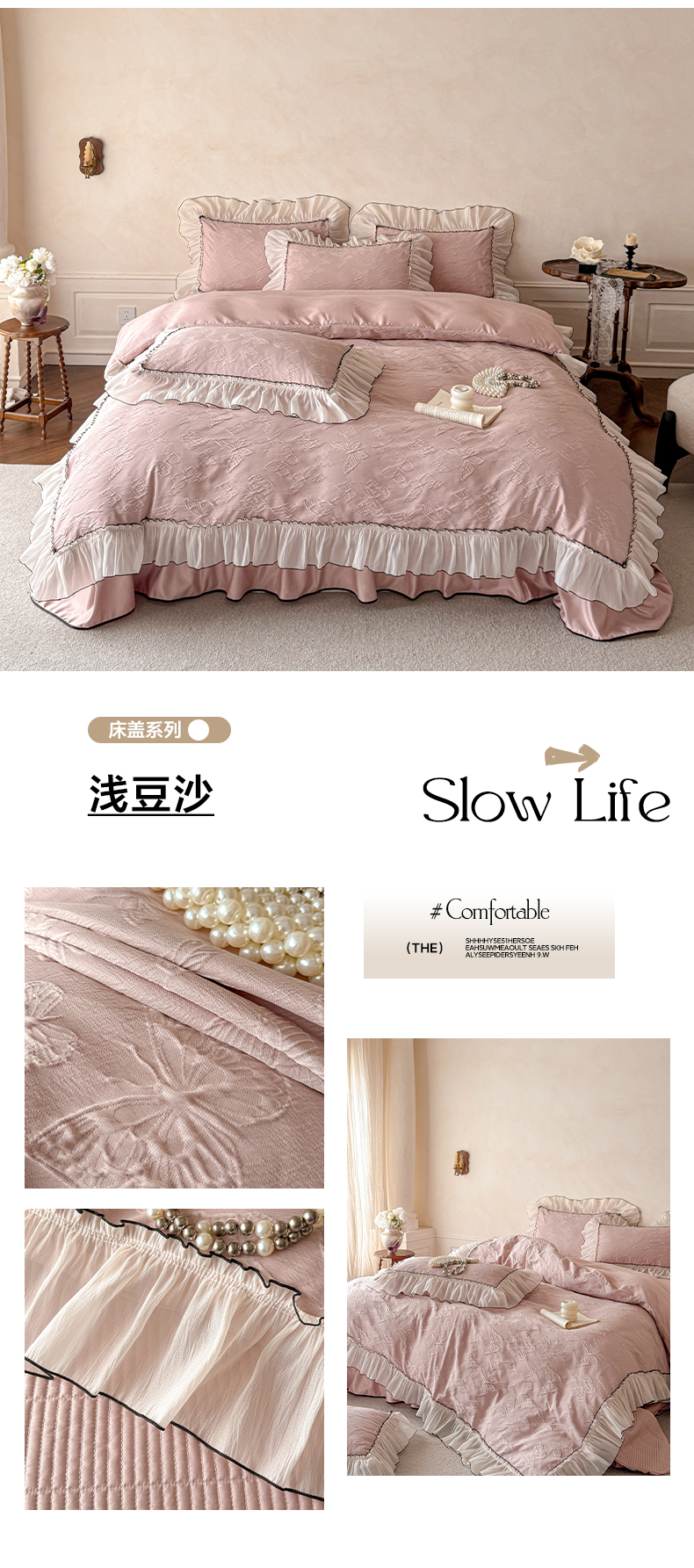 (总)迪梦姿家纺 2026新款春意真丝提花蕾丝款夏被四件套,豆沙,粉玉,抹茶绿,奶白,天空兰,香槟