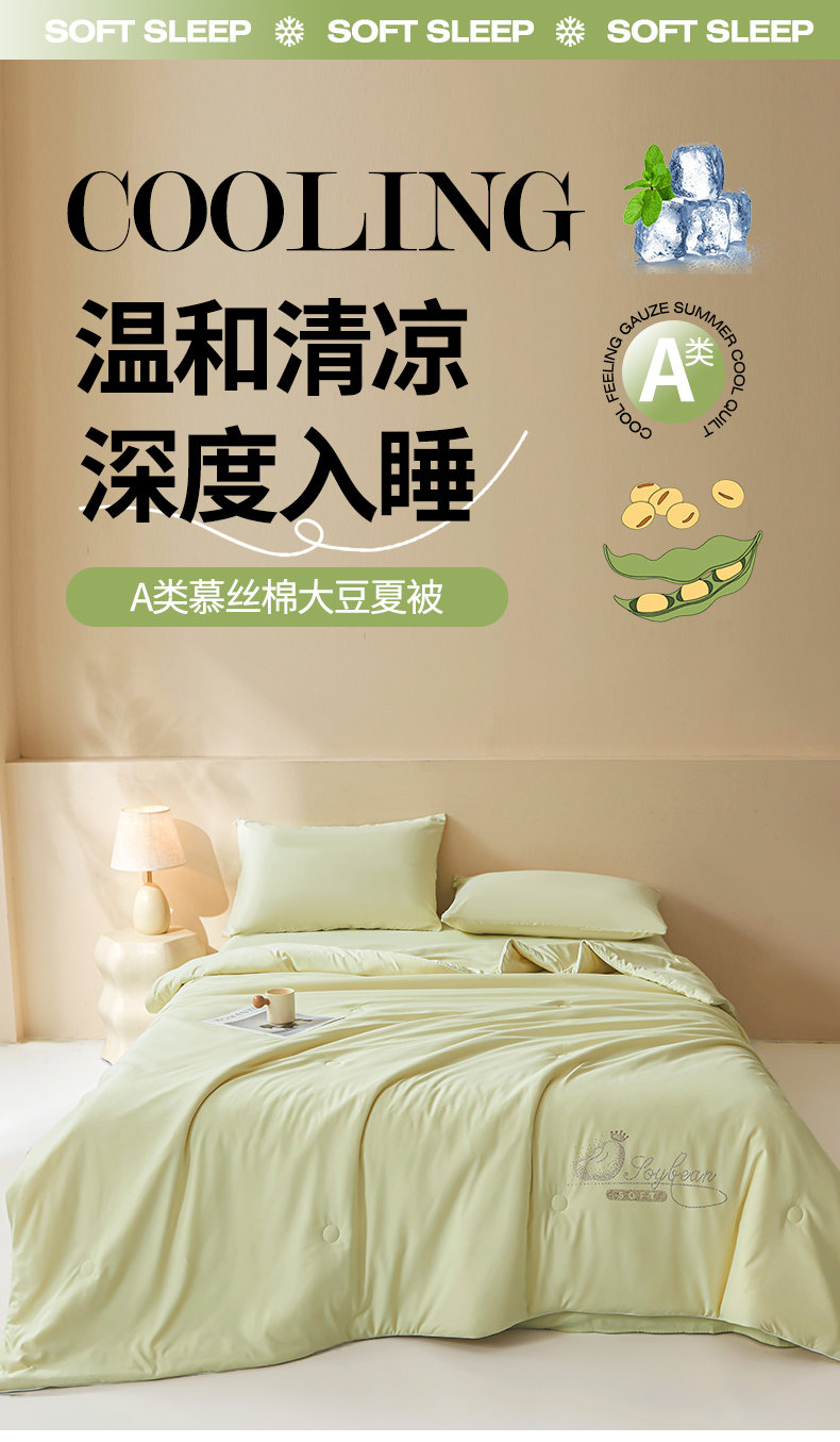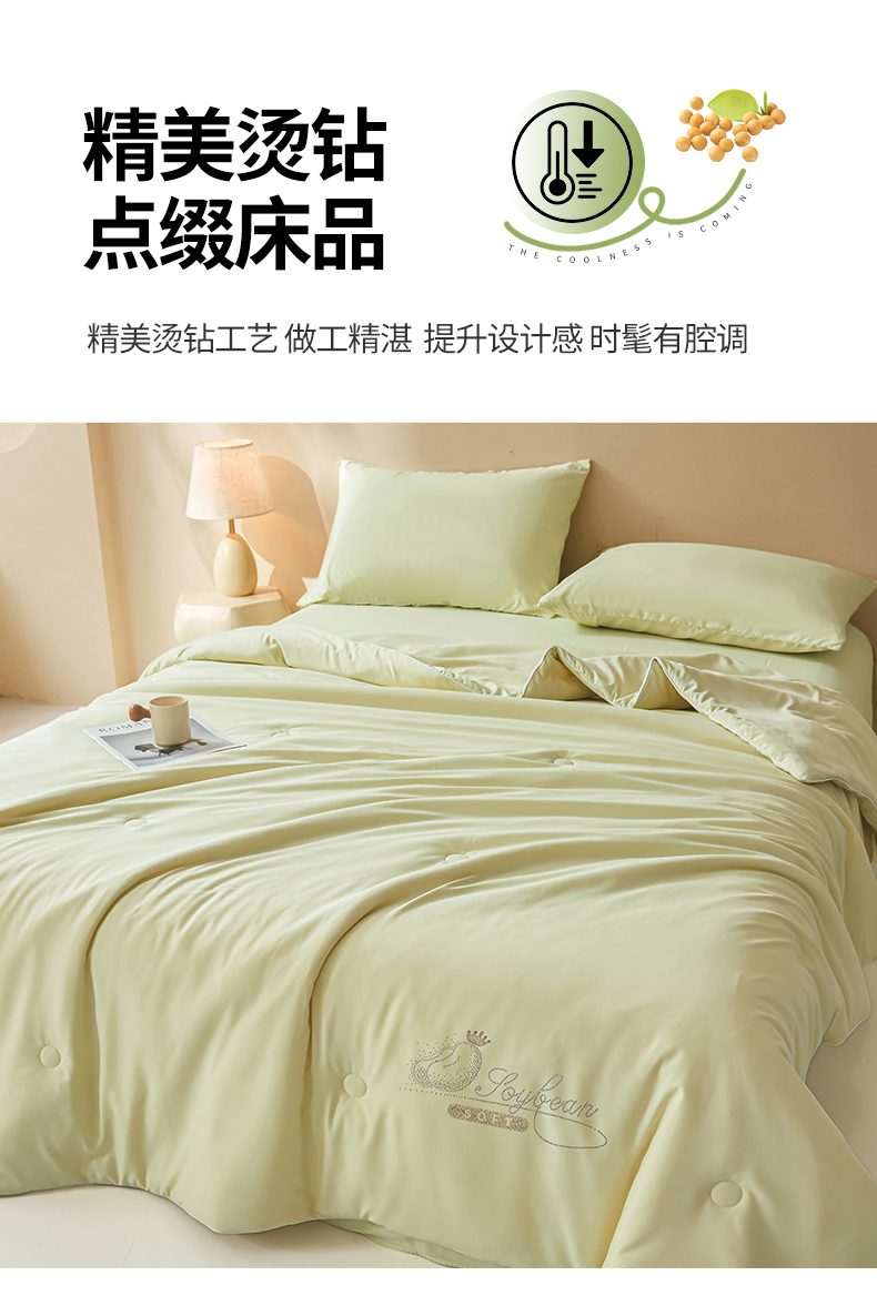 商品名称:晓时候 2026新款大豆纤维夏凉被仿锦氨凉感夏被烫钻空调被被子被芯 清新绿