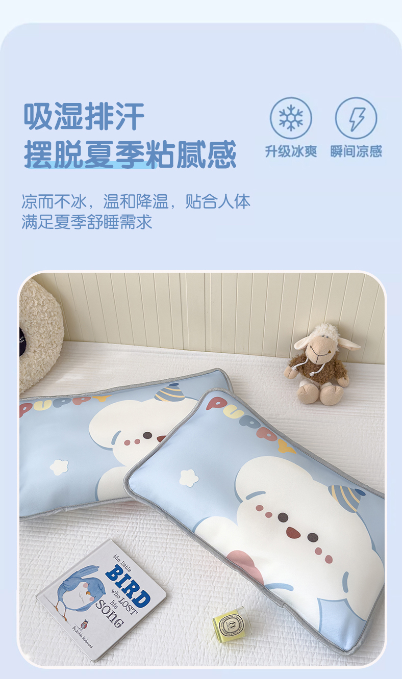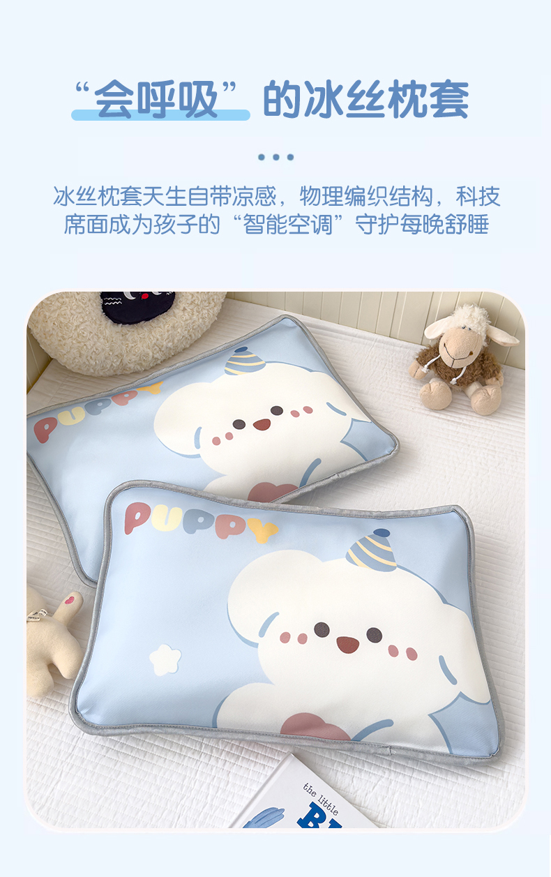 丽美人家纺 2026新款柔软亲肤儿童冰丝枕套 快乐汪