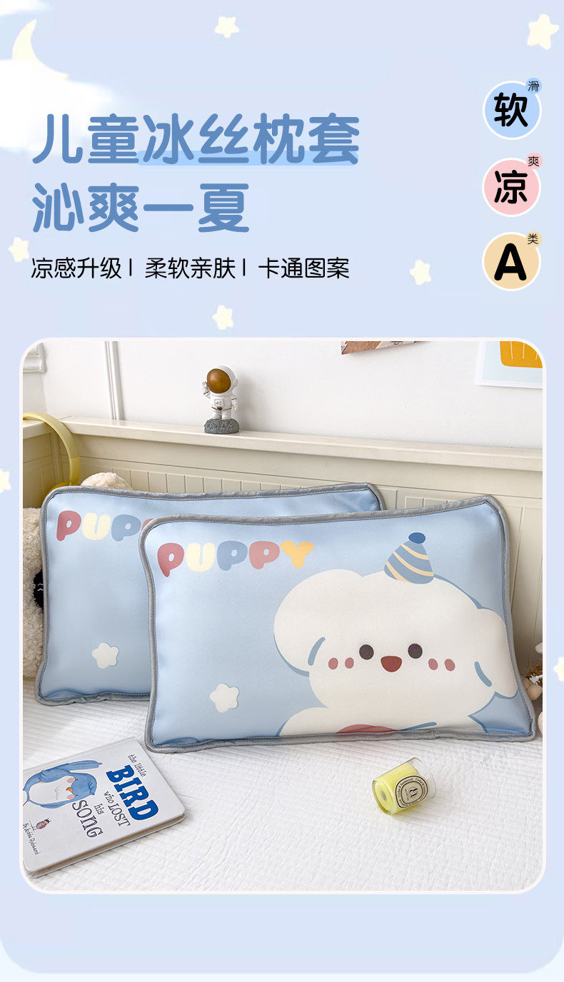 (总)丽美人家纺 2026新款柔软亲肤儿童冰丝枕套,爱心恐龙,安逸熊猫,斑点狗,笨笨熊,馋嘴兔,发财马,好运熊,呼呼熊,加油鸭,可爱兔,可可熊,恐龙屋,快乐汪,煤球宝贝,梦想家,软眠兔,生日猫,生日熊,听歌小团子,幸运星,鱼恋猫,宇航员,芝士星,puppy狗
