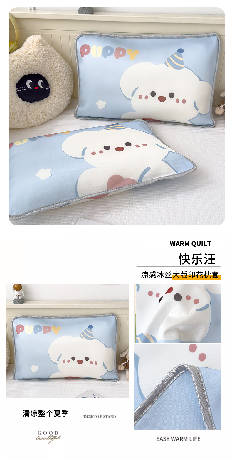 • 91家纺网 家纺一手货源 找家纺 丽美人家纺 2026新款柔软亲肤儿童冰丝枕套 快乐汪