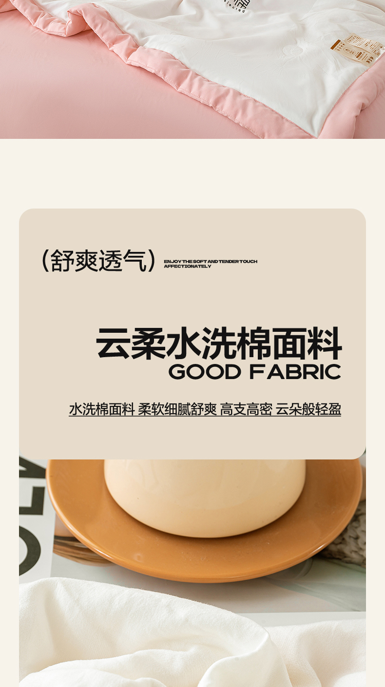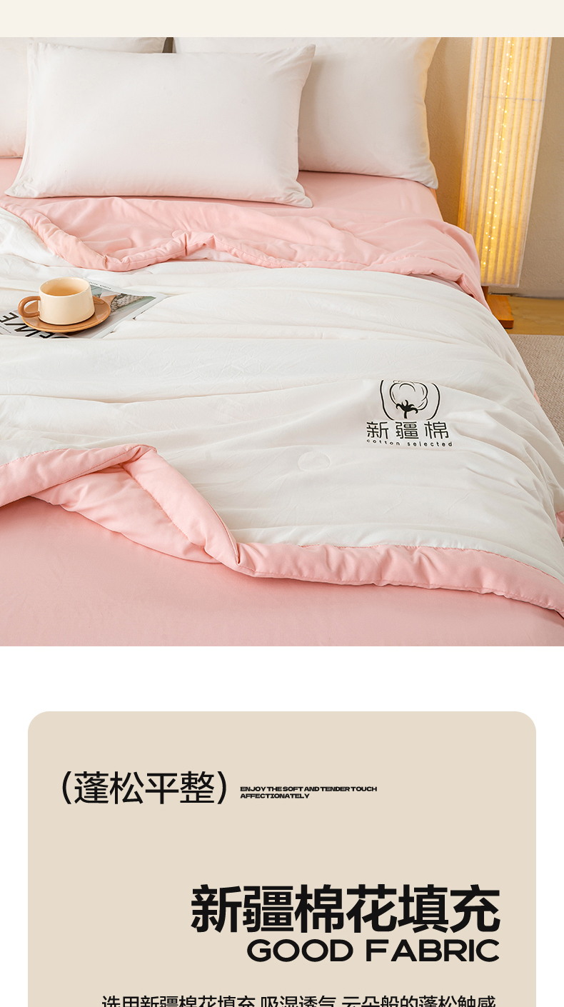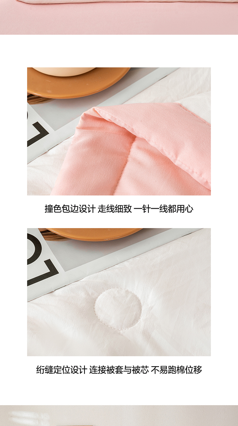憨豆家纺 2026春夏新款 水洗棉纯色双拼棉花被夏凉被空调被(常年有货款) 棉朵-浅粉白