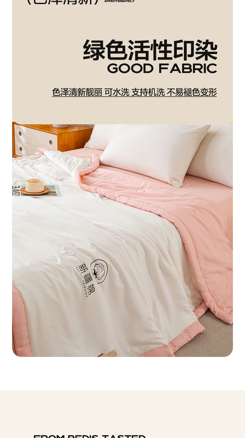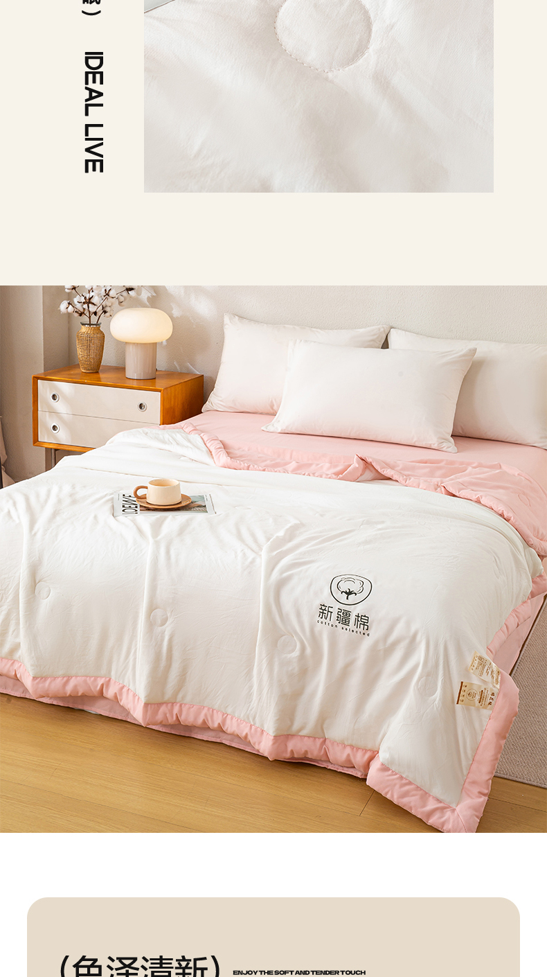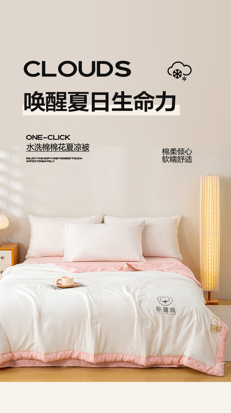 憨豆家纺 2026春夏新款 水洗棉纯色双拼棉花被夏凉被空调被(常年有货款) 棉朵-浅粉白