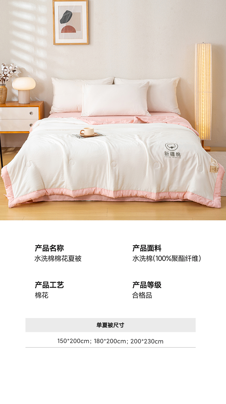 商品名称:憨豆家纺 2026春夏新款 水洗棉纯色双拼棉花被夏凉被空调被(常年有货款) 棉朵-浅粉白