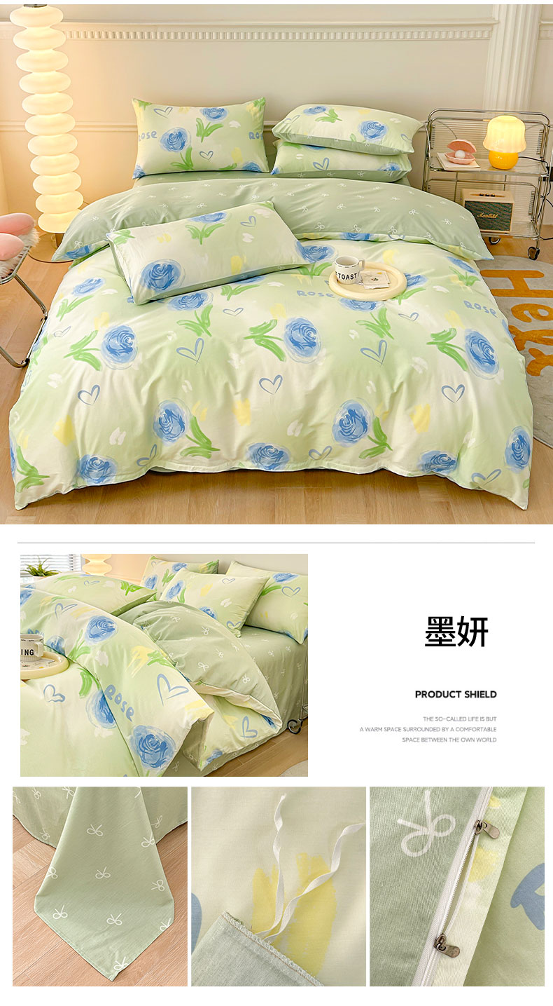当前位置: 91家纺网 > 商品网购 > 床品套件 > 四件套 > 全棉普通四件套 > 宇彬家纺 2026直播新款13372A类全棉纯棉印花床单床笠款四件套和单被套喷气清新简约 告白小耶