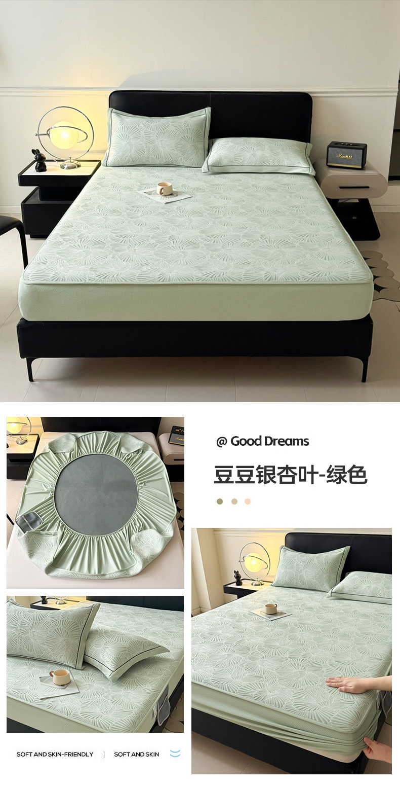 商品名称:牵梦萦家纺 2026新款立体浮雕压花工艺凉感豆豆凉席-床笠款 豆豆银杏叶-绿色