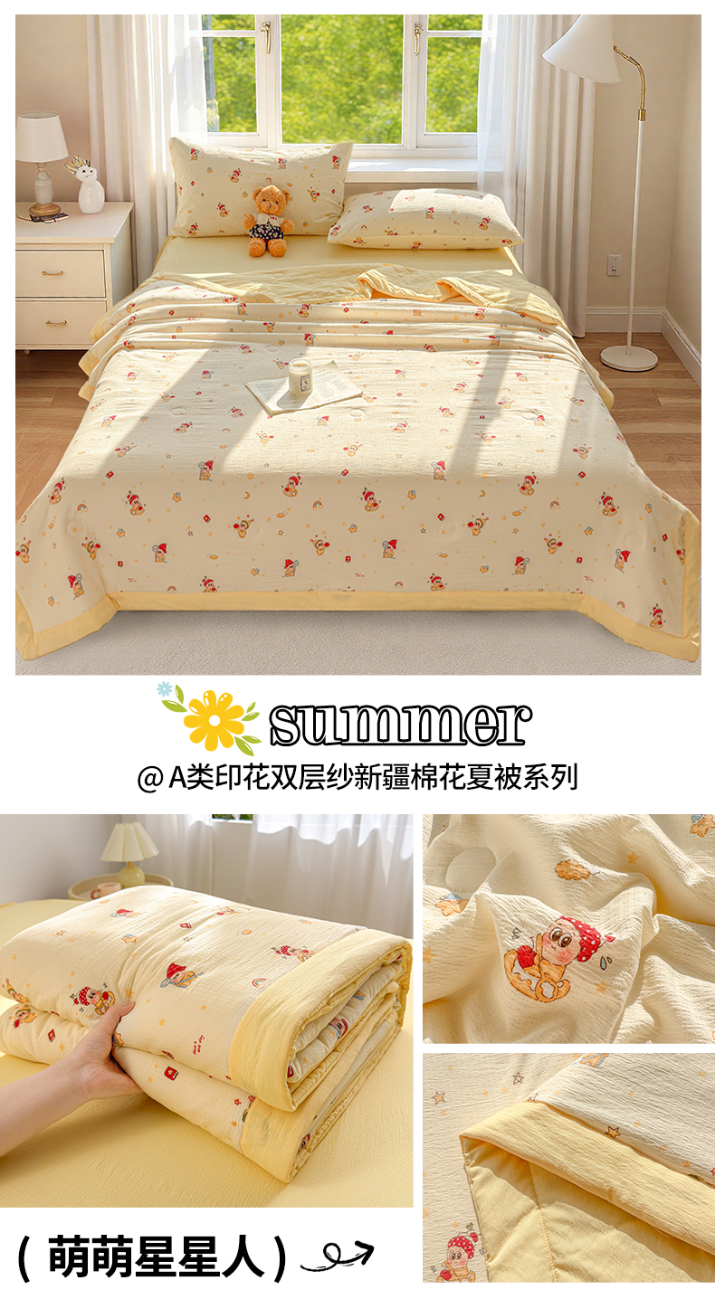 (总)晓时候 2026新款双层纱印花夏被床盖四件套新疆棉花被夏凉被空调被单夏被,萌萌星星人,安然入夏,多彩波点,繁花,蝴蝶结-紫,花间兔,蓝色泡芙狗,萌宠派对,奶芙狗,芊芊花语,俏皮狗,甜甜西高地,甜心女孩,小确幸