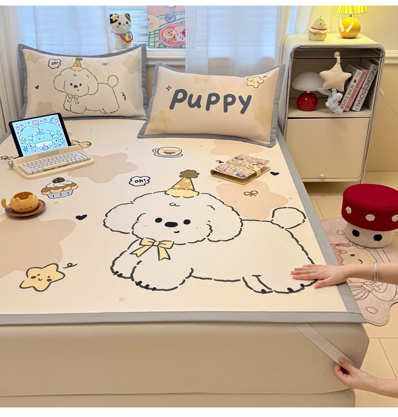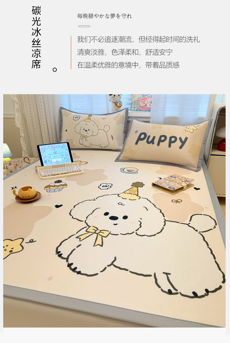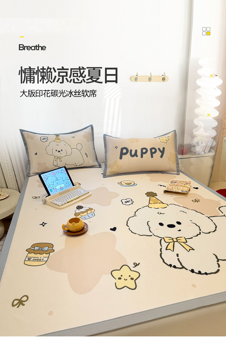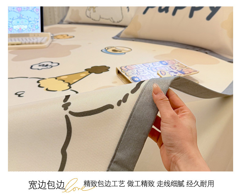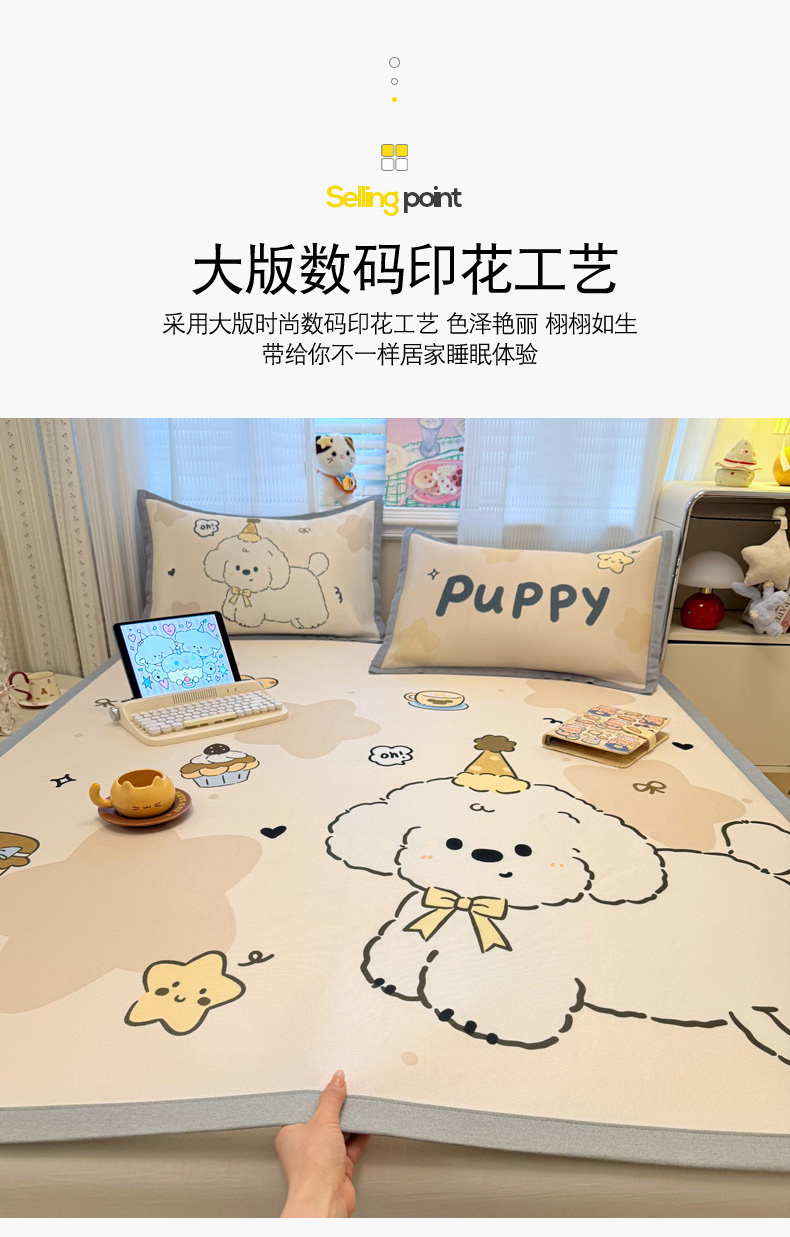 (总)柒月家居 2026新款大版印花碳光冰丝席床席款凉席,围兜狗狗,斑点熊,茶茶蓝猫,蛋糕派对,蛋糕汪汪,动物世界,房子小狗,卷卷白狗,满天星辰,猫猫小窝,猫咪伙伴,萌宝,萌系女孩,蘑菇小兔,晚安熊,汪汪乐园,星星之愿,熊猫宝贝,雪纳瑞狗