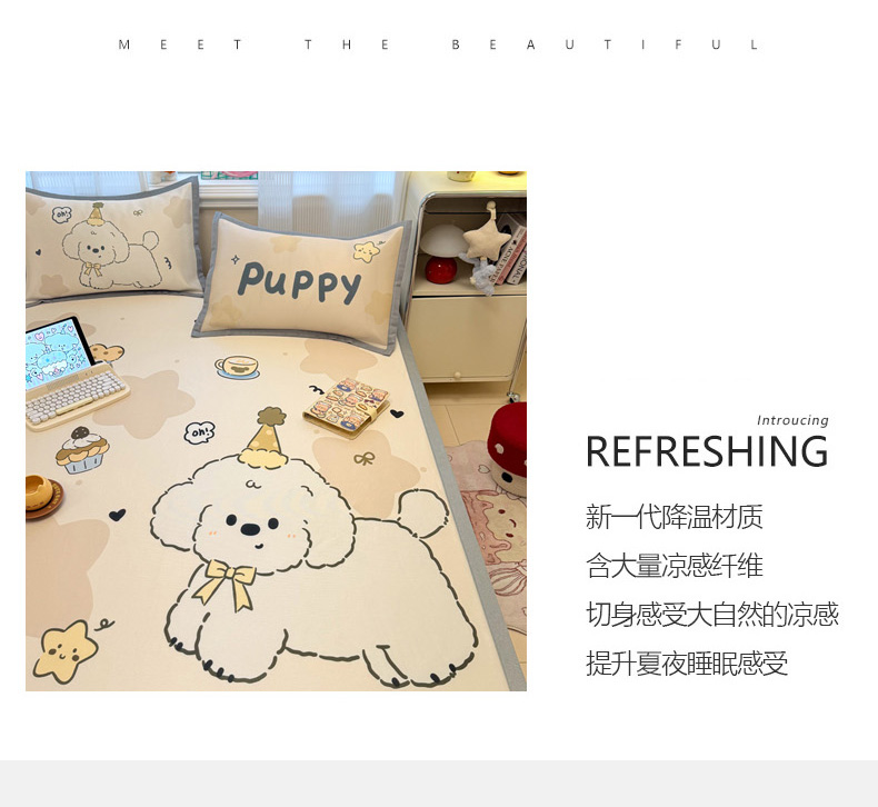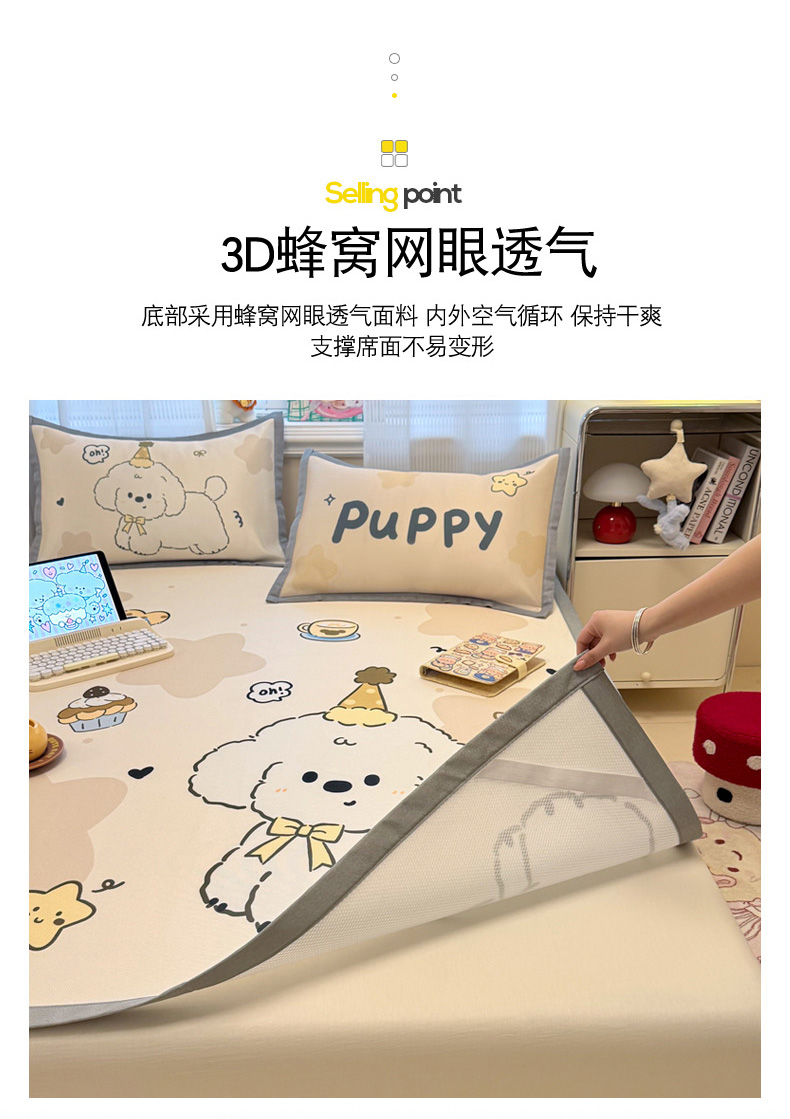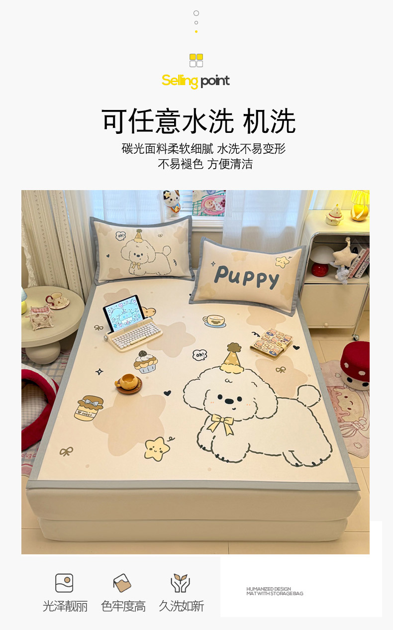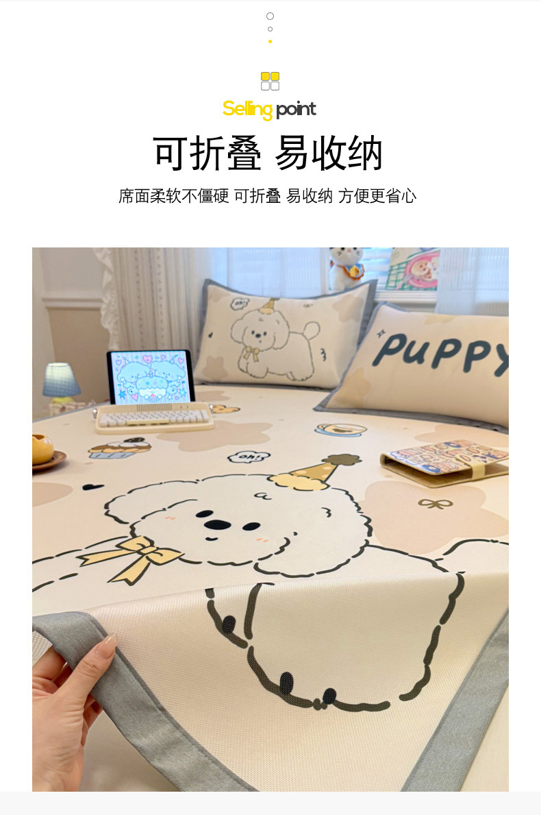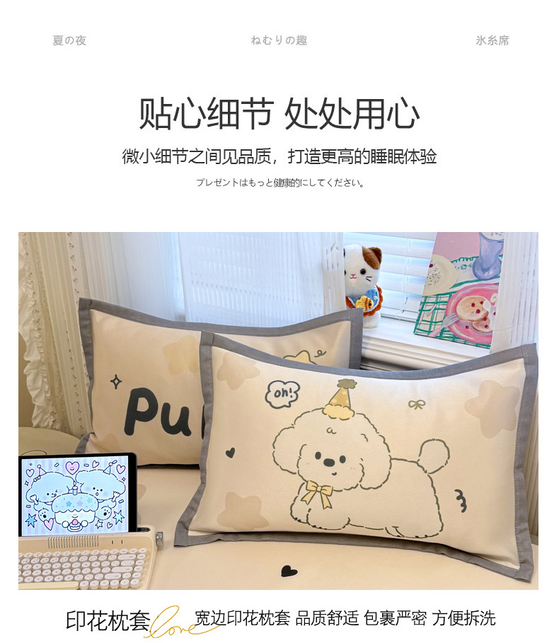 (总)柒月家居 2026新款大版印花碳光冰丝席床席款凉席,围兜狗狗,斑点熊,茶茶蓝猫,蛋糕派对,蛋糕汪汪,动物世界,房子小狗,卷卷白狗,满天星辰,猫猫小窝,猫咪伙伴,萌宝,萌系女孩,蘑菇小兔,晚安熊,汪汪乐园,星星之愿,熊猫宝贝,雪纳瑞狗