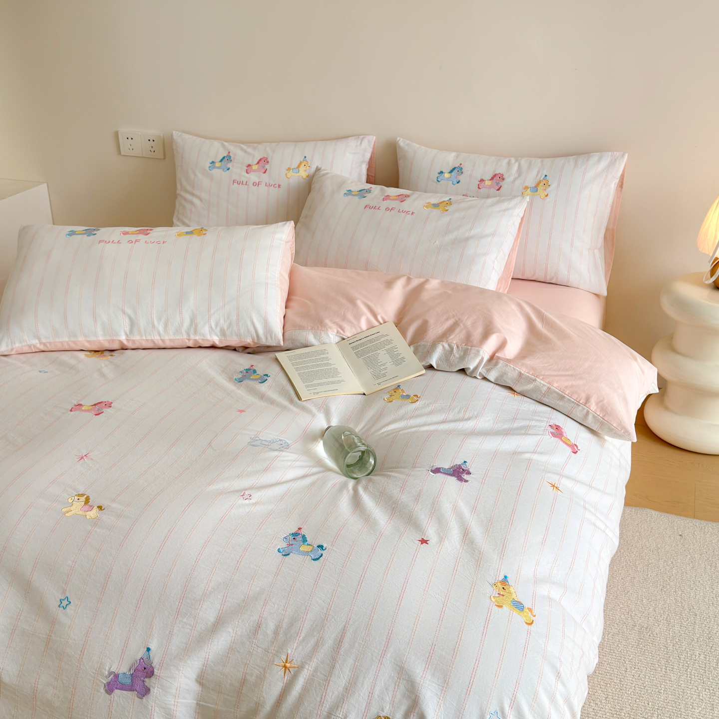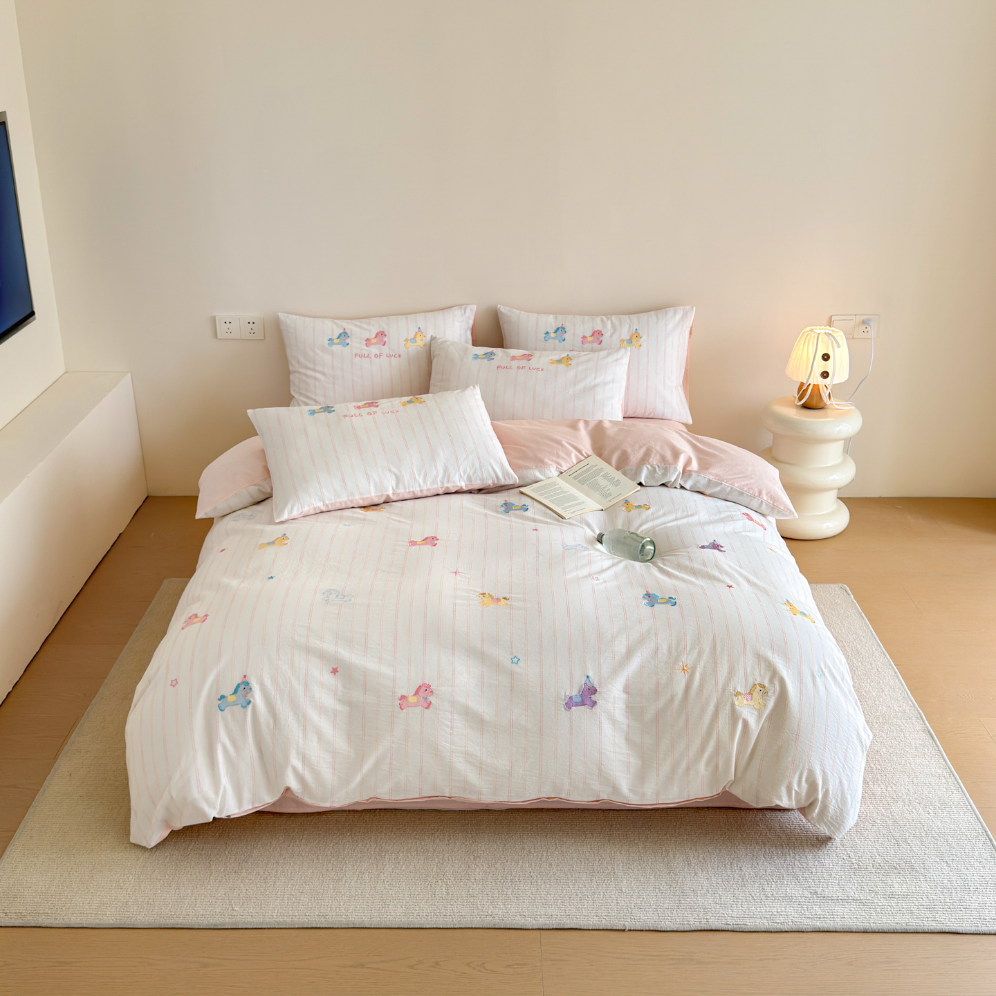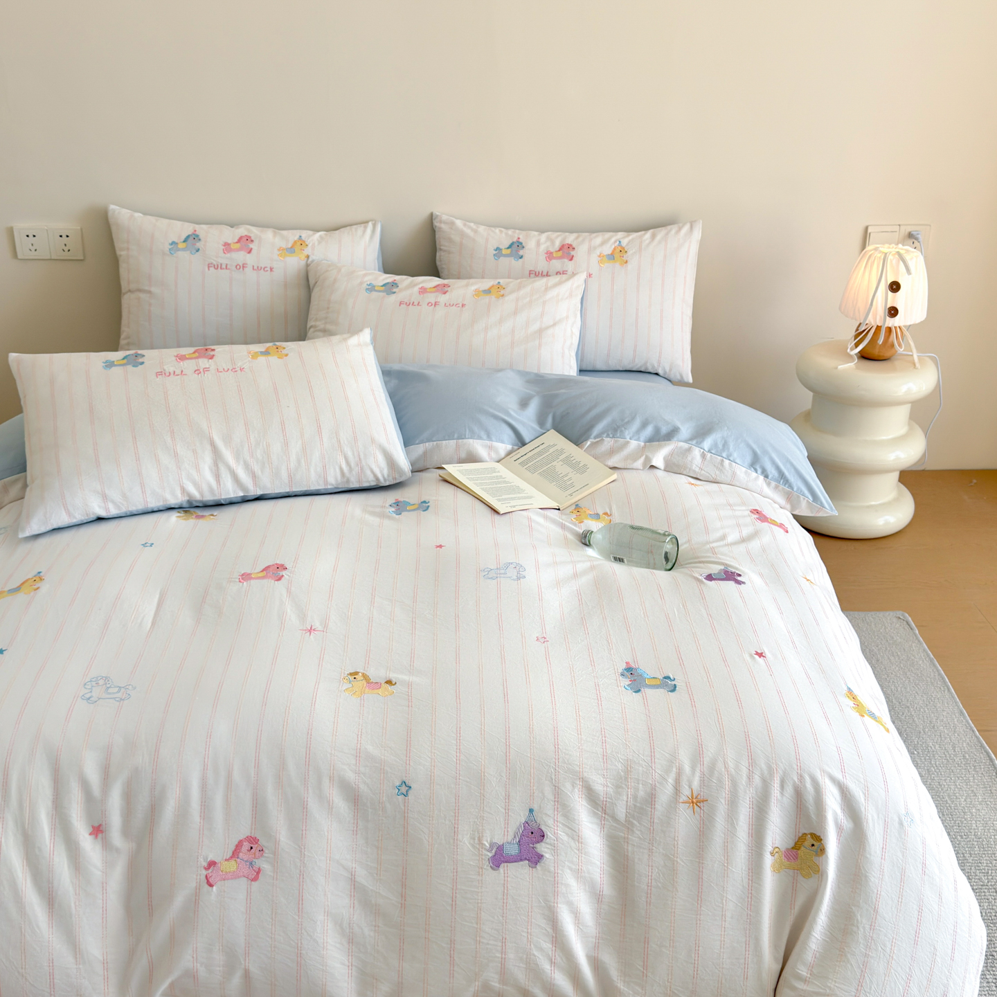 当前位置: 91家纺网 > 商品网购 > 床品套件 > 四件套 > 全棉普通四件套 > (总)优彩 2026新款全棉纯棉色织提花水洗棉刺绣四件套-以梦为马
