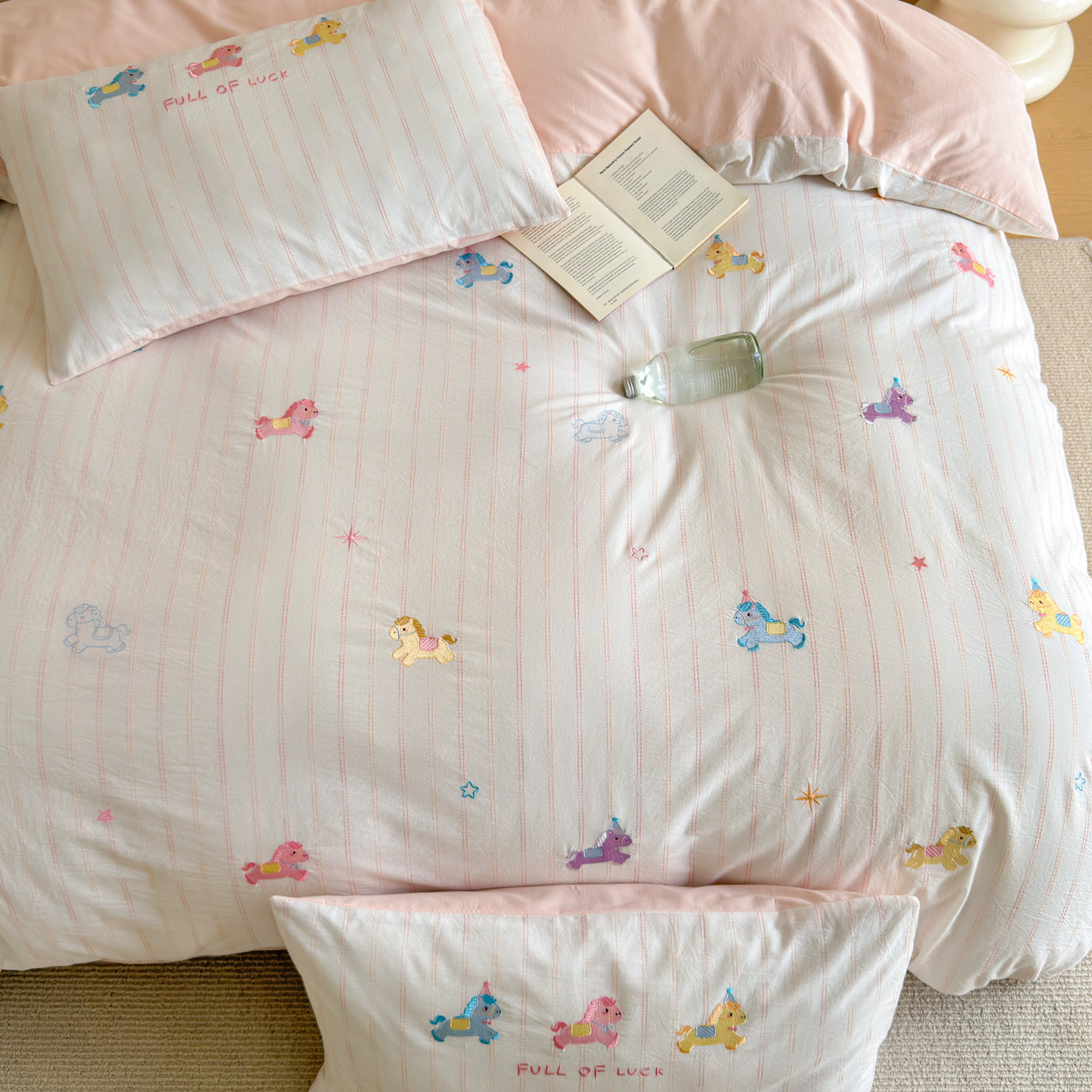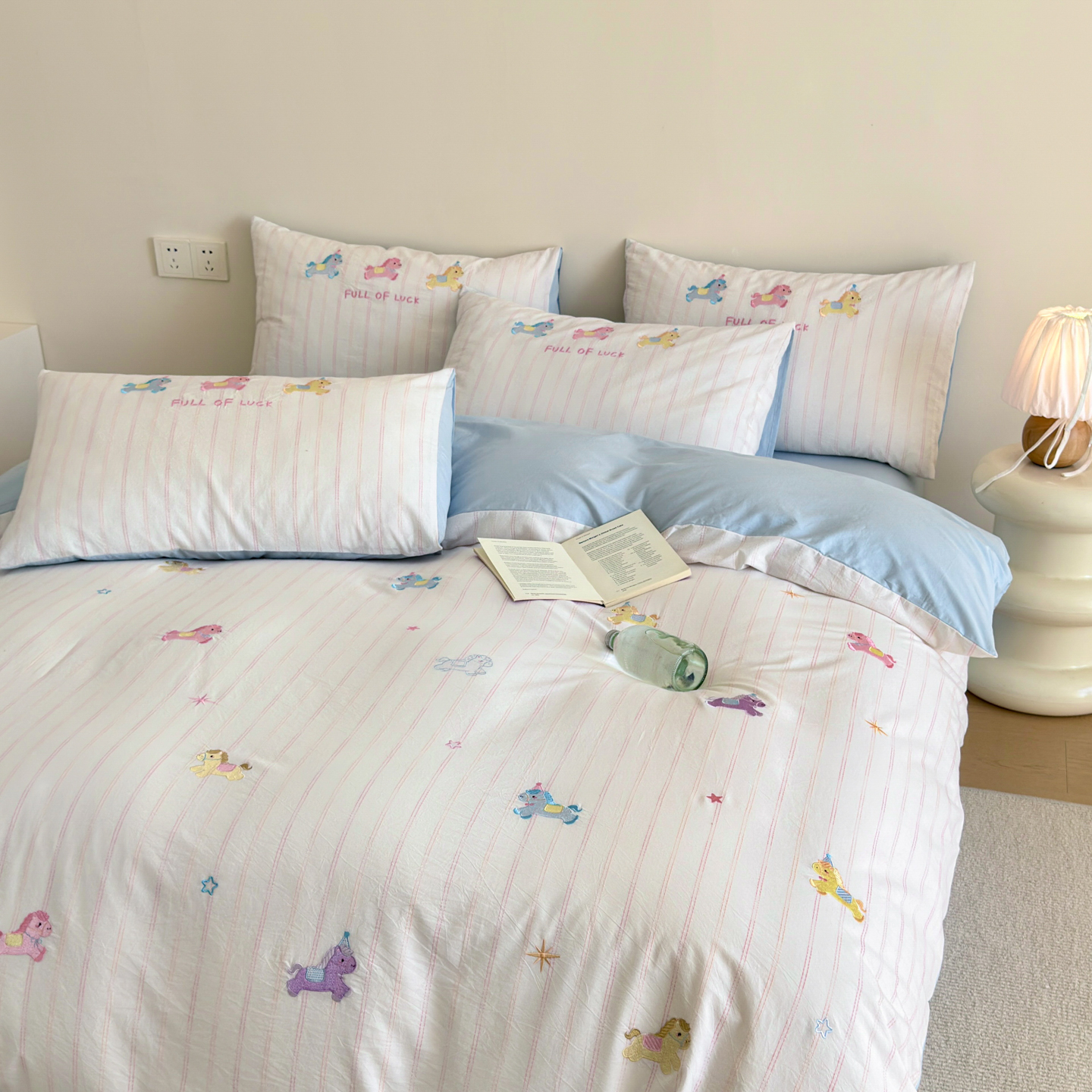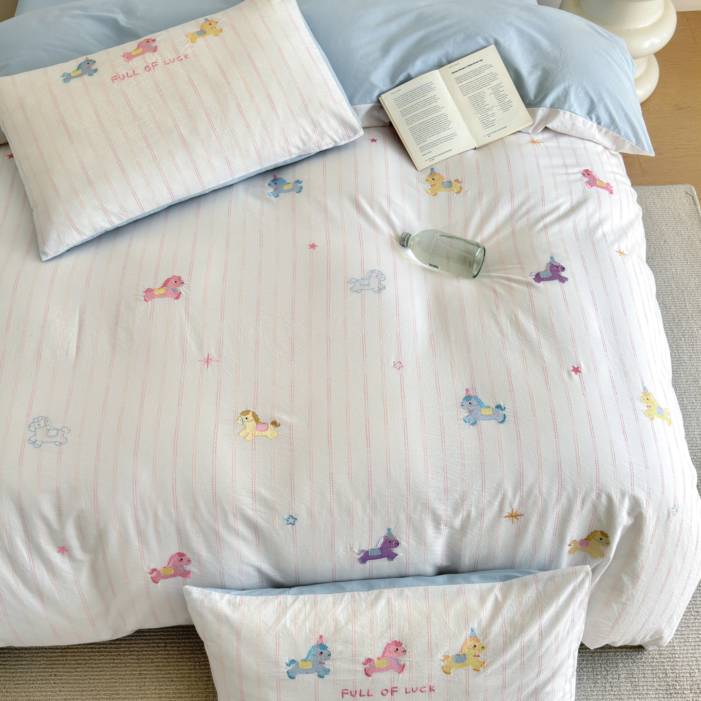 当前位置: 91家纺网 > 商品网购 > 床品套件 > 四件套 > 全棉普通四件套 > (总)优彩 2026新款全棉纯棉色织提花水洗棉刺绣四件套-以梦为马