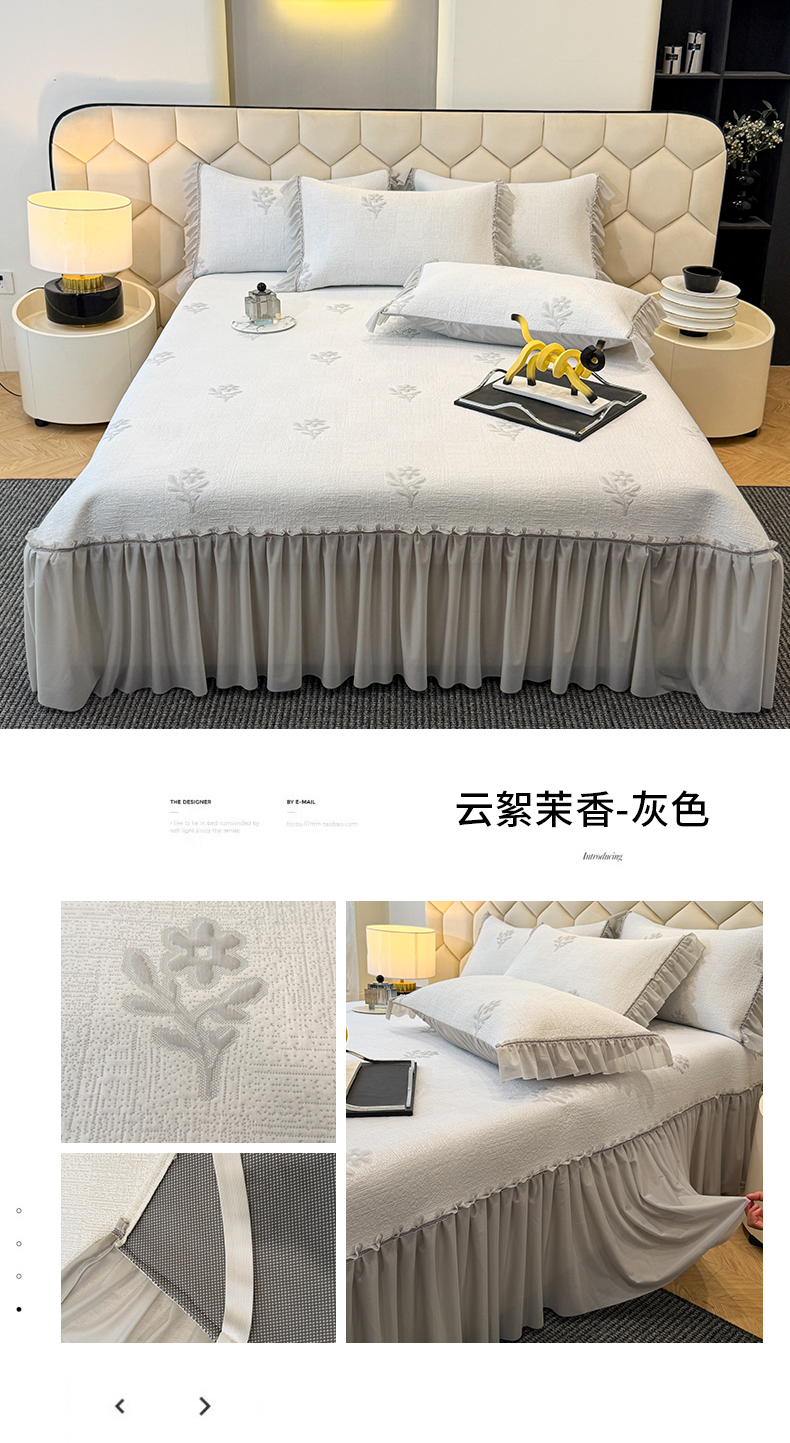 商品名称:(总)六合家纺 2026春夏新款A类凉感高分子床裙款凉席三件套-云絮茉香