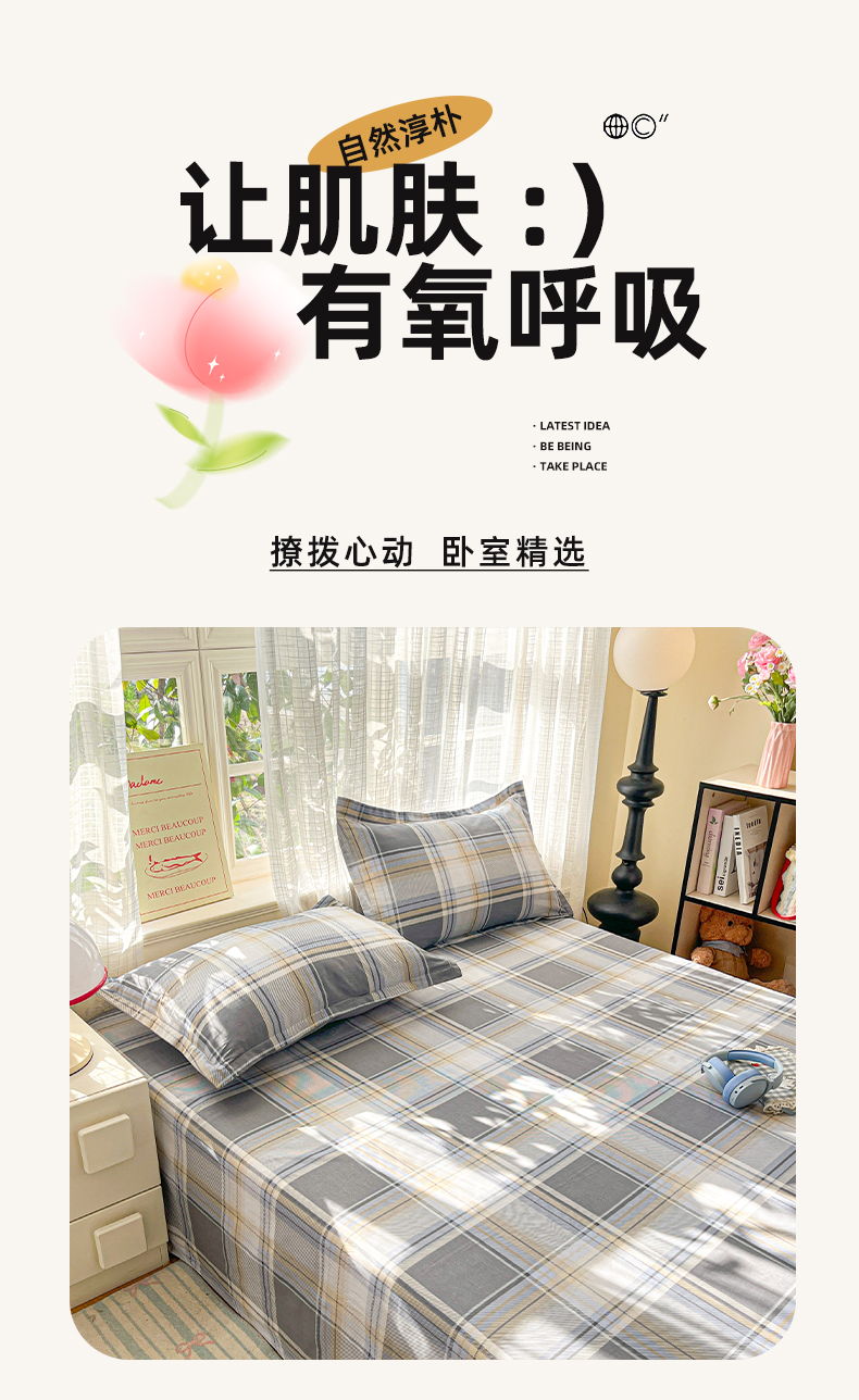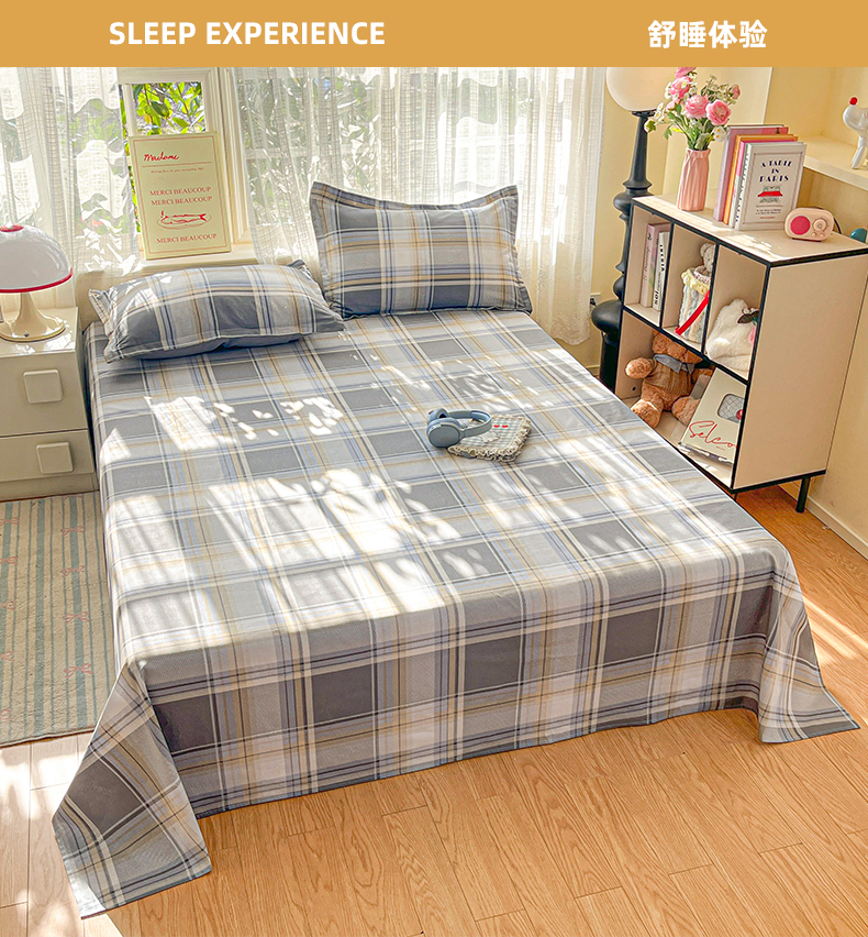 • 91家纺网 家纺一手货源 找家纺 好亿来家纺 2026新款全棉纯棉印花小清新床单单件床单单品单床单 趣味格-灰