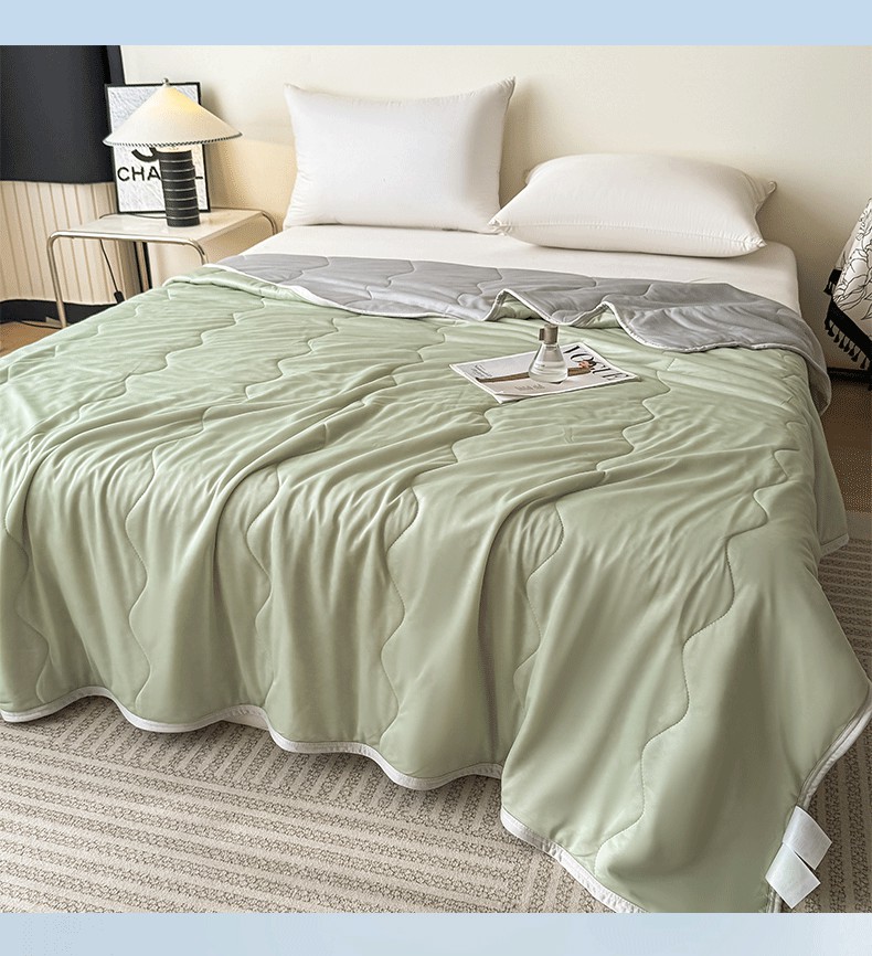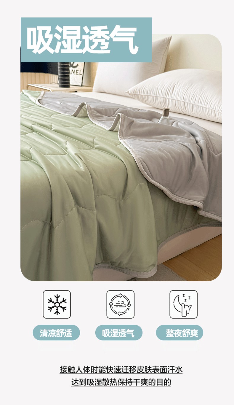 好欣怡家纺 2026新款双层绗缝凉感丝夏被 浅茶绿