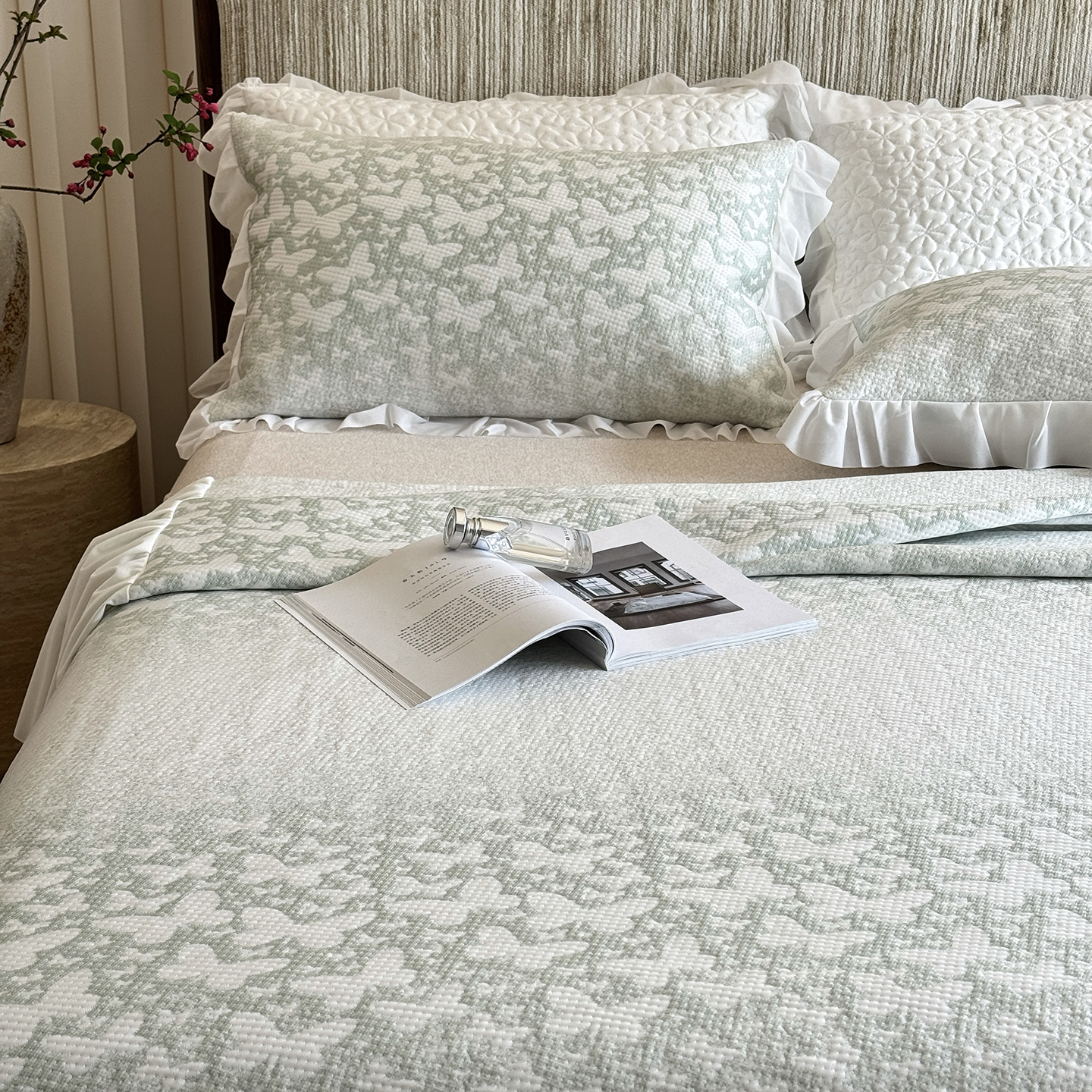 【仙气飘飘】傲蕾AL BEDDING出口韩国高分子冰丝软凉席床裙款冰丝席雪纺花边乙纶凉席A类可机洗,半亩花田,冰蓝花叙,冰雪奇缘,绿蝶漫舞,青纱云纹,素笔描花,合集