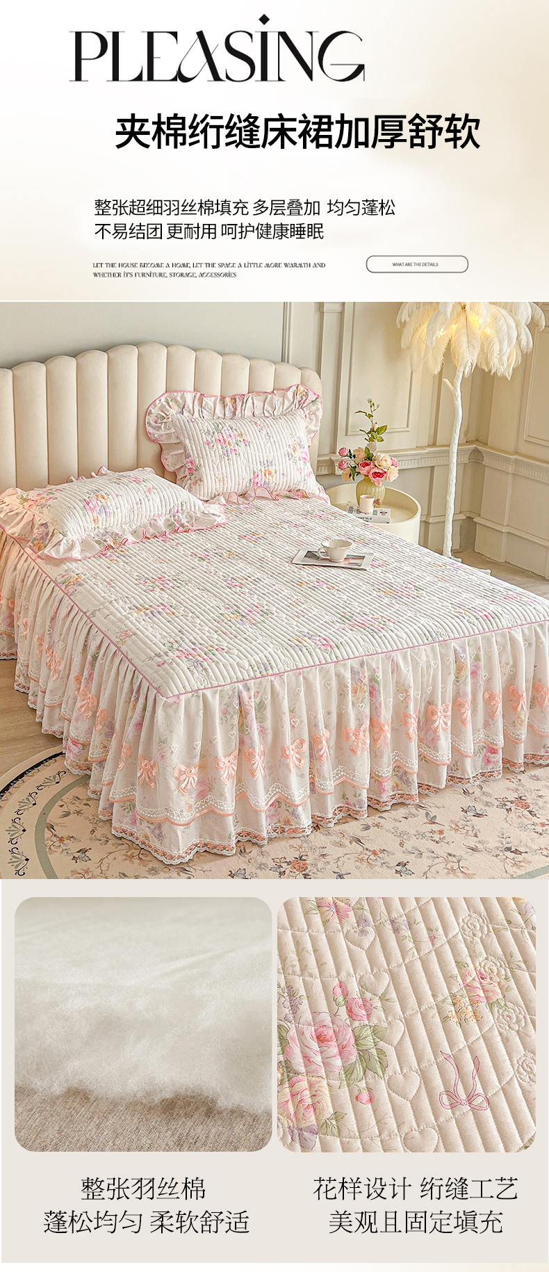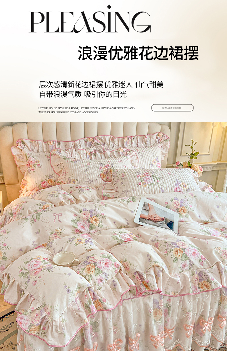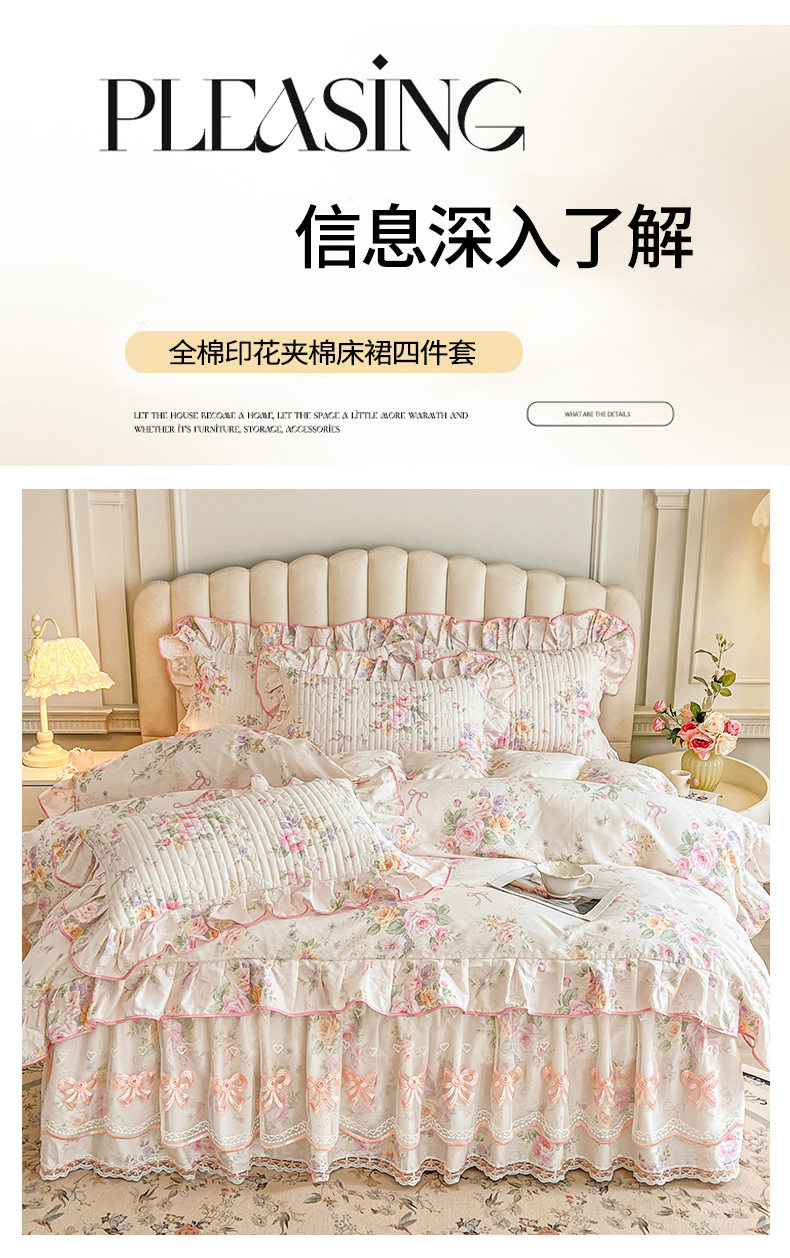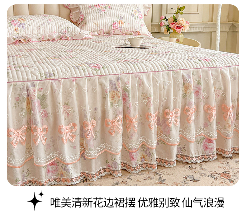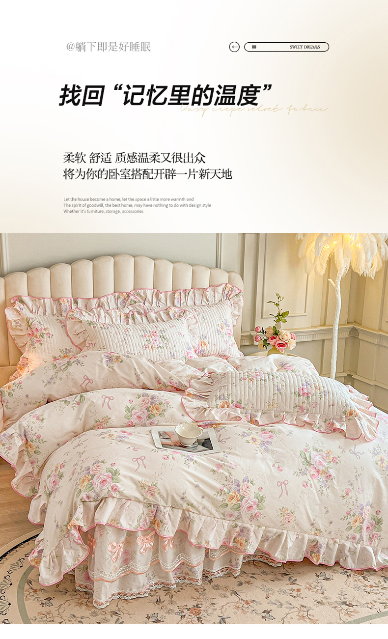 当前位置: 91家纺网 > 商品网购 > 床品套件 > 四件套 > 全棉普通四件套 > 宜凡家纺 2026新款全棉印花公主风夹棉床裙四件套 玉容昭婉