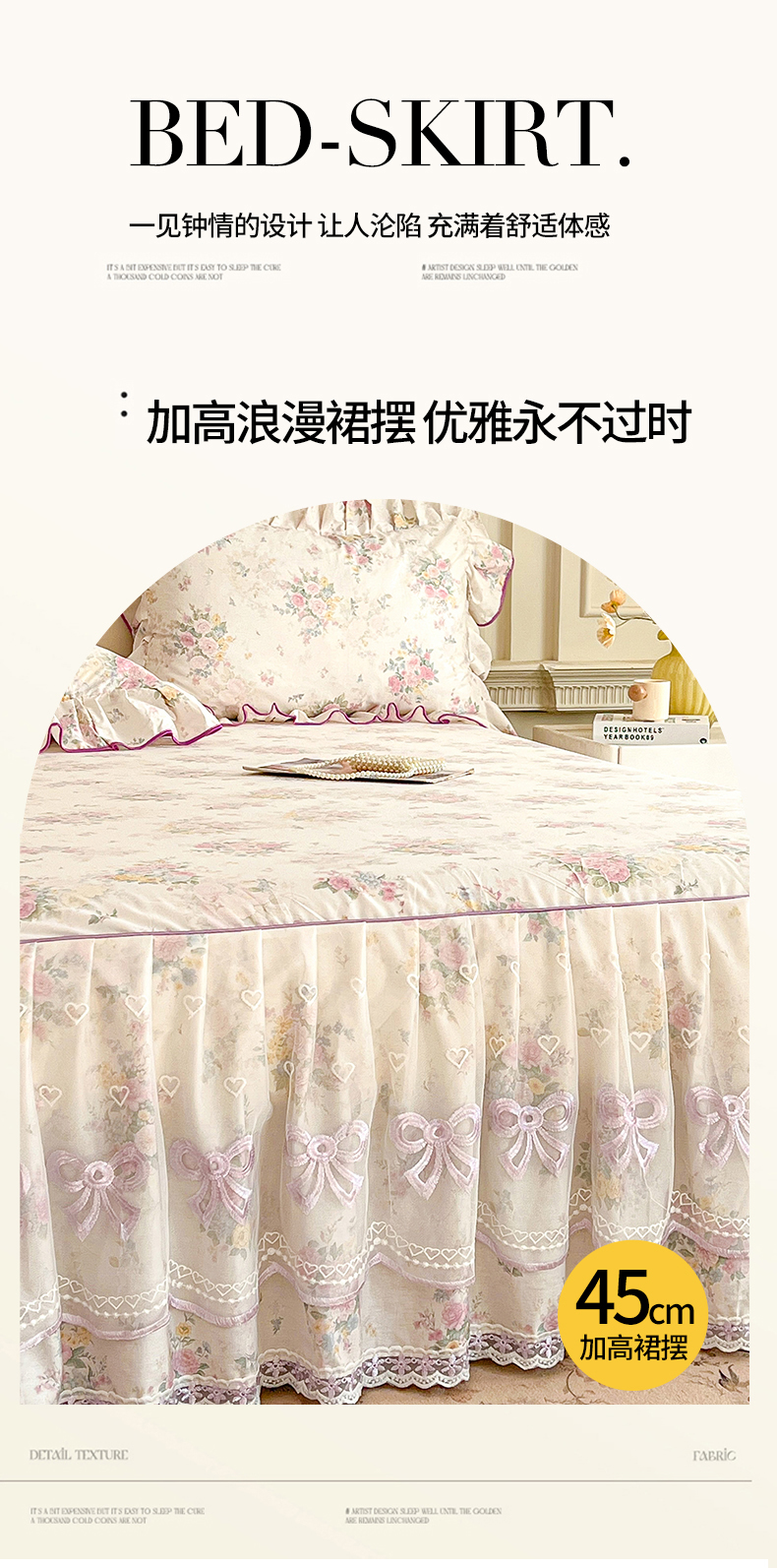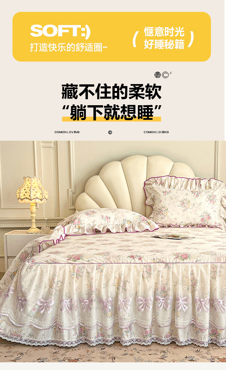 • 91家纺网 家纺一手货源 找家纺 (总)宜凡家纺 2026新款全棉公主风单层床裙三件套,海棠之恋,镜花映月,水苏栀清,玉容昭婉