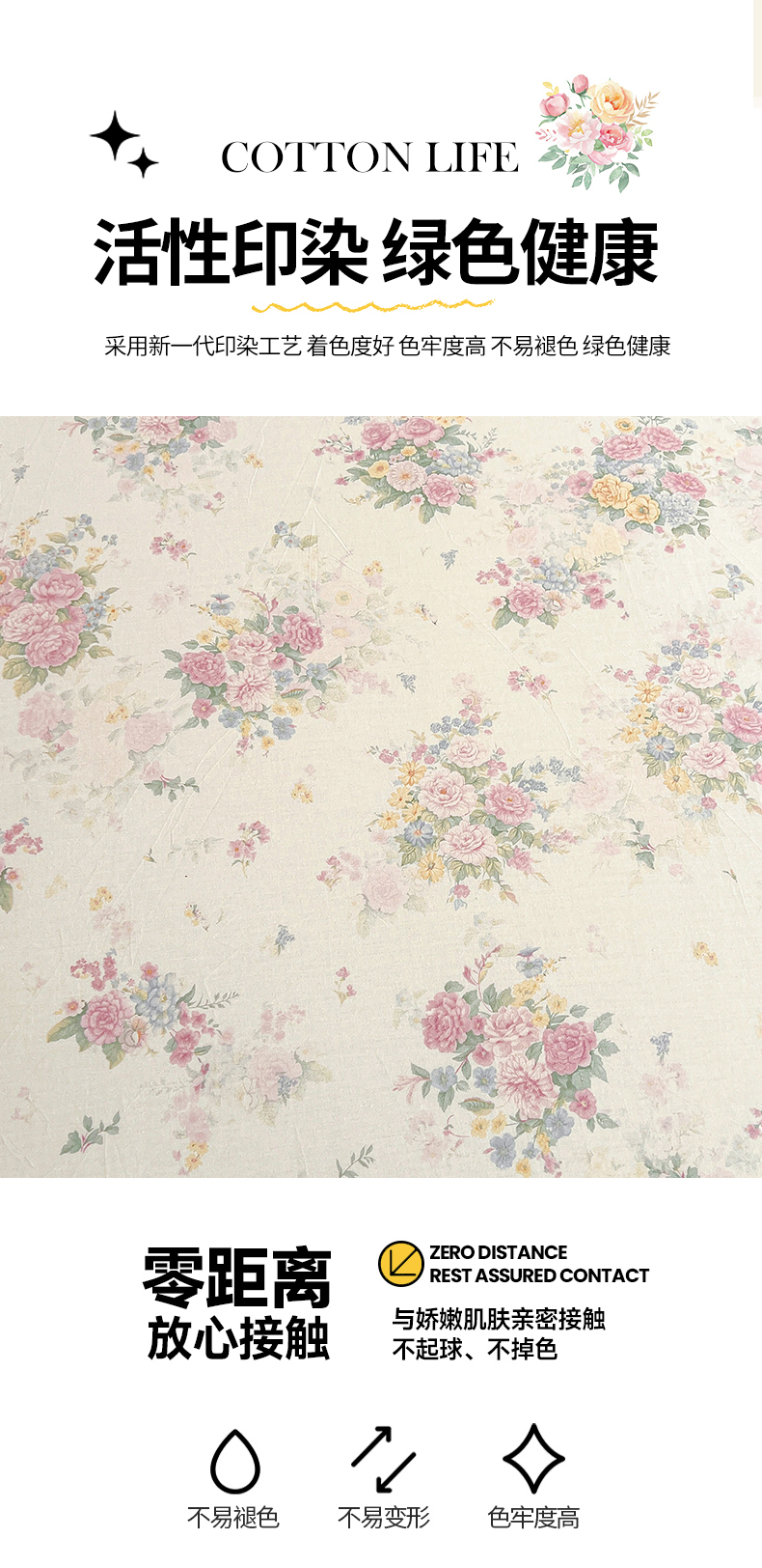 (总)宜凡家纺 2026新款全棉印花夹棉花边床笠三件套,海棠之恋,镜花映月,水苏栀清,玉容昭婉