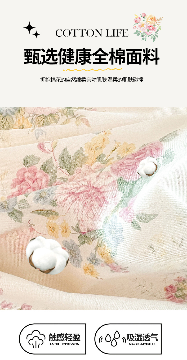 • 91家纺网 家纺一手货源 找家纺 (总)宜凡家纺 2026新款全棉印花公主风夹棉床裙四件套,海棠之恋,镜花映月,水苏栀清,玉容昭婉