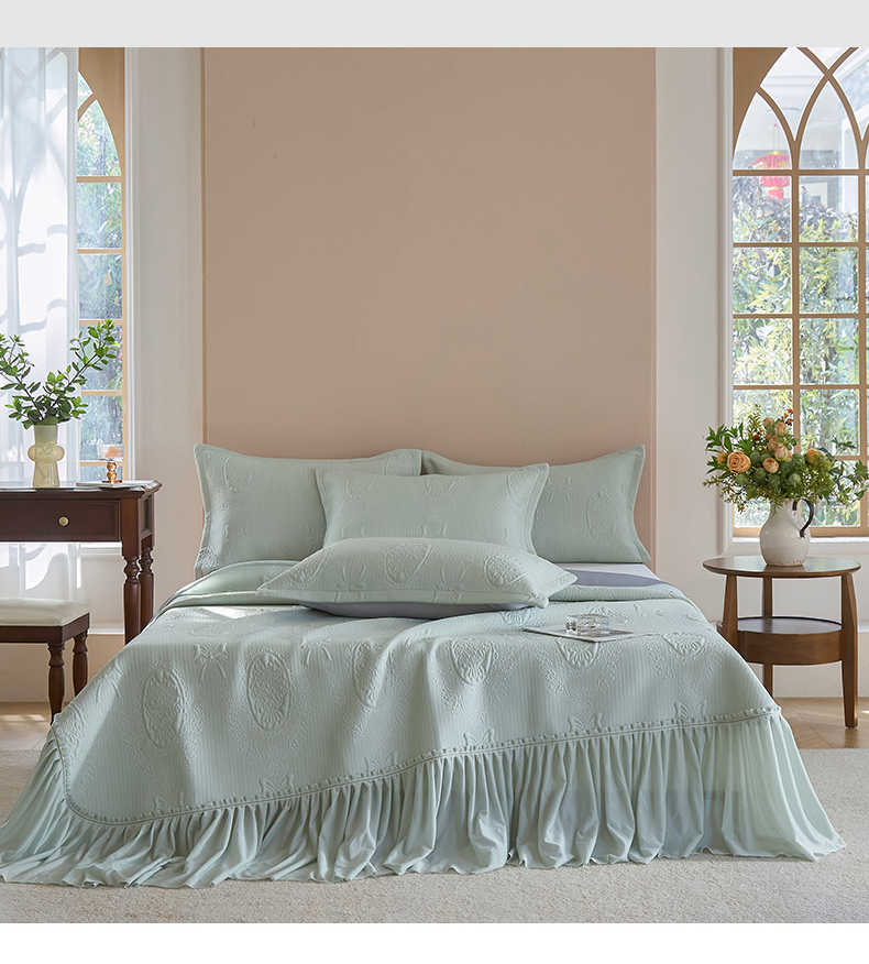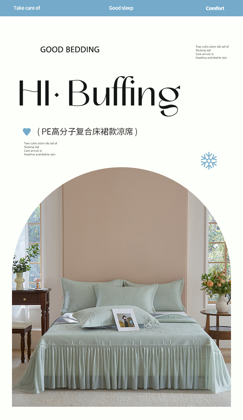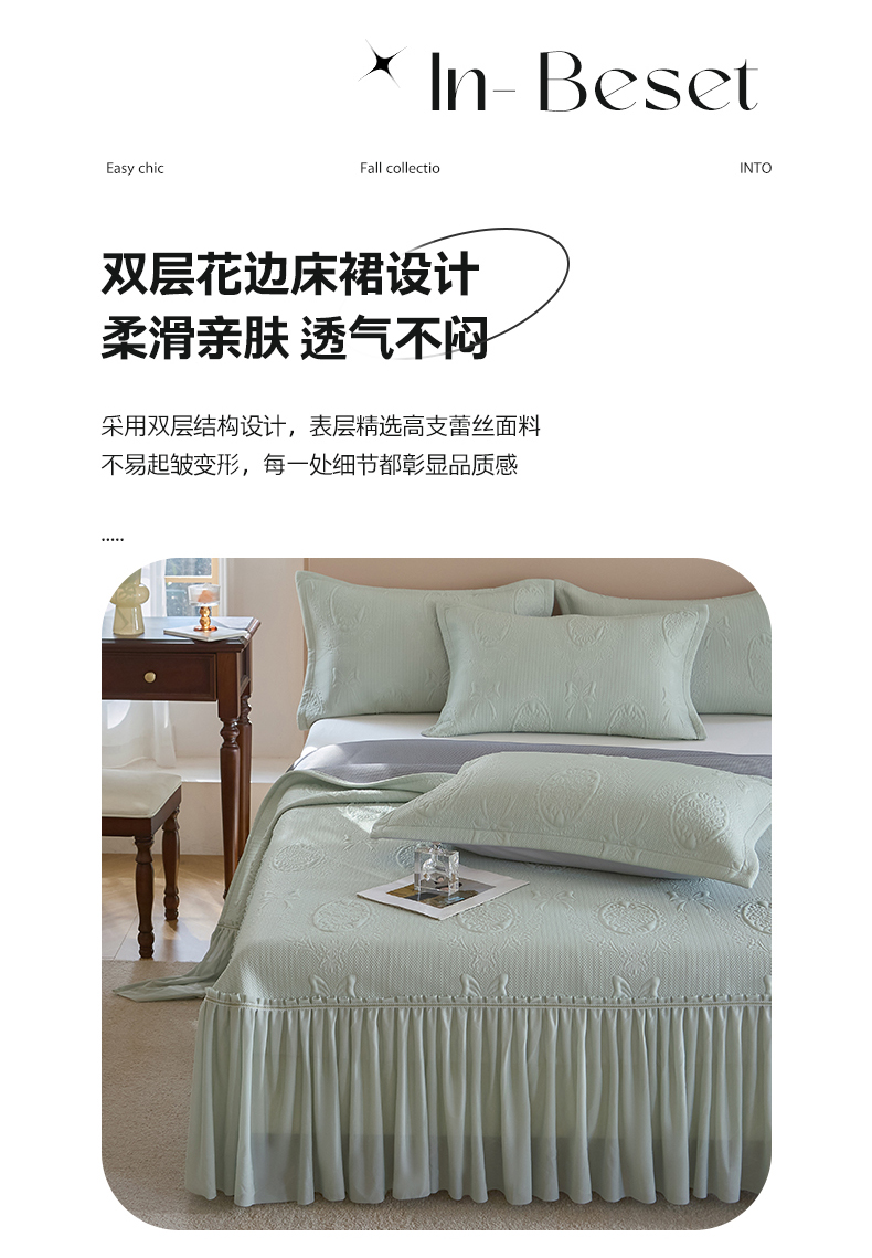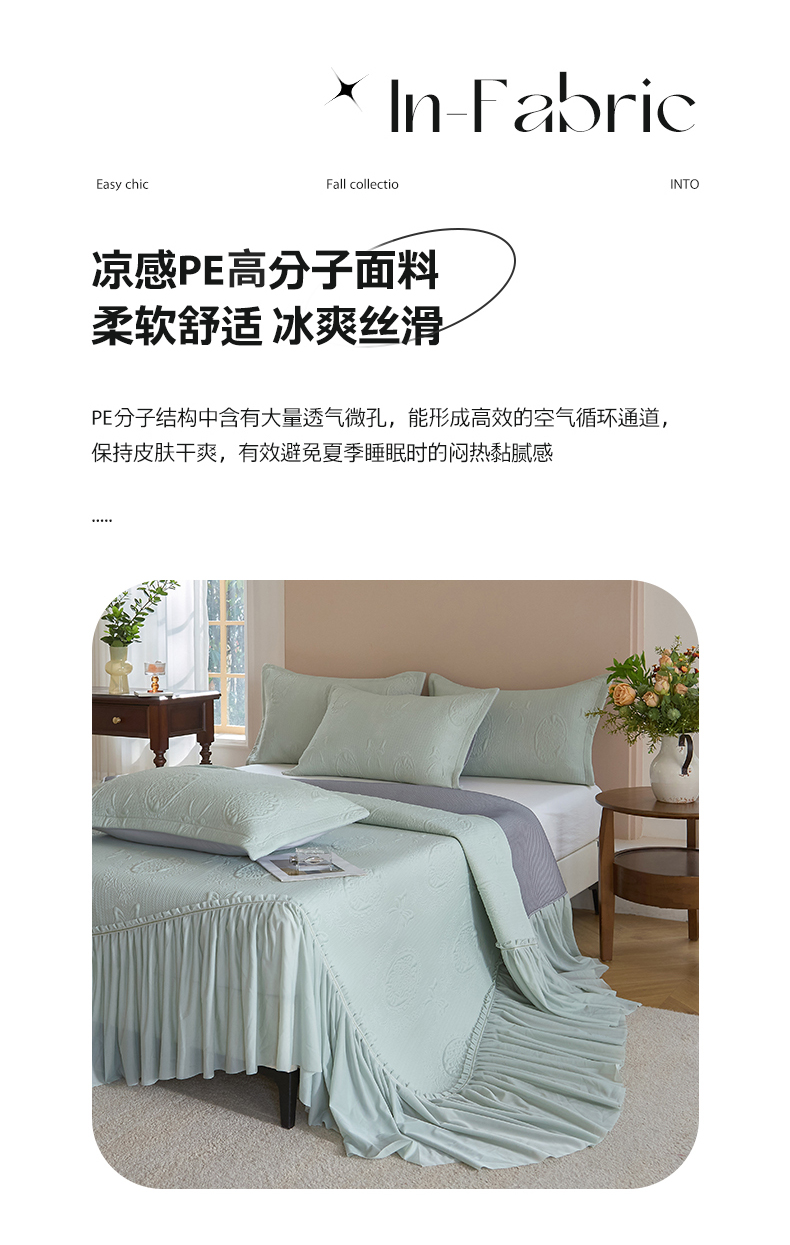 (总)金绣美居 2026新款PE高分子凉感席聚乙烯冰感床裙款凉席三件套-韩式系列,韩恋,花朝,棠梨,星落,迎风,郁香