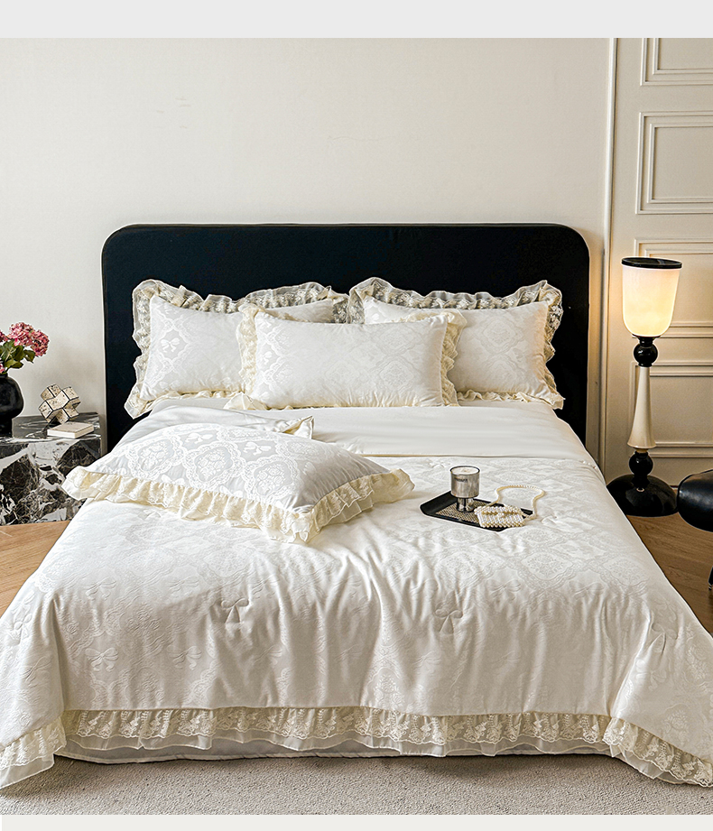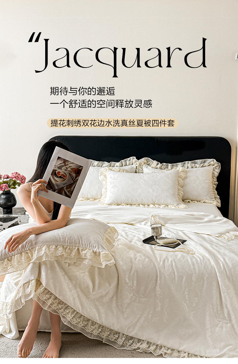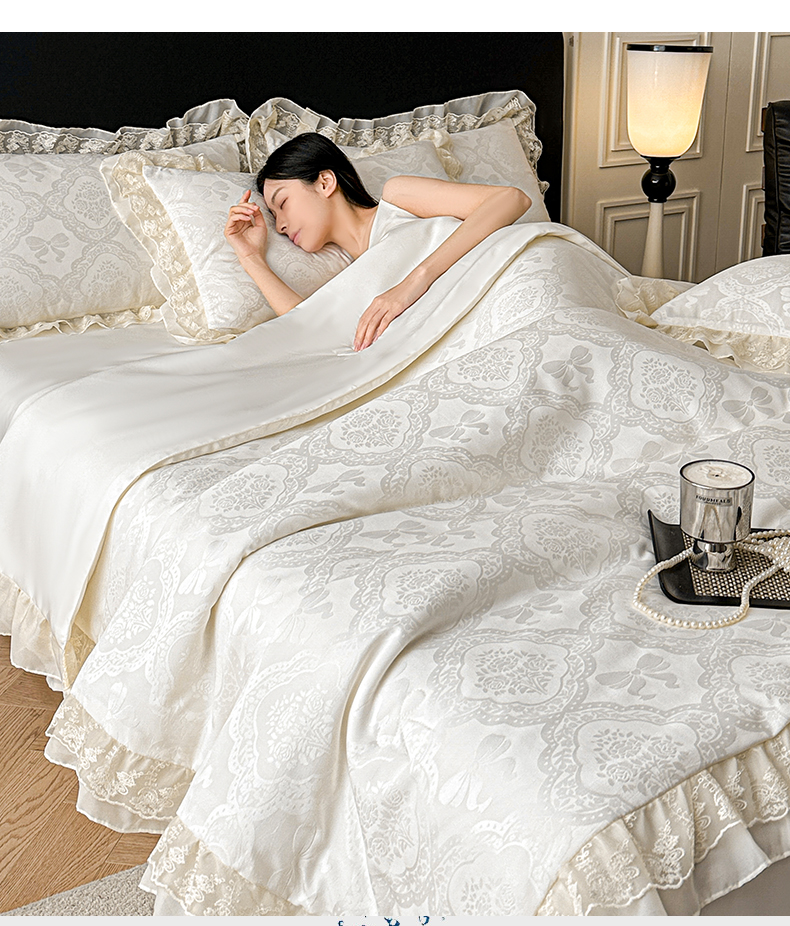 你好美丽 2026新款水洗真丝蕾丝花边夏被夏凉被空调被四件套-夏梦 夏梦白