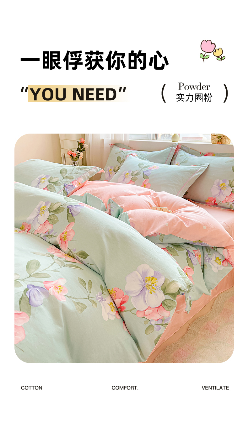 当前位置: 91家纺网 > 商品网购 > 床品套件 > 四件套 > 全棉普通四件套 > 帛美家纺 2026新款全棉纯棉印花四件套 草莓园