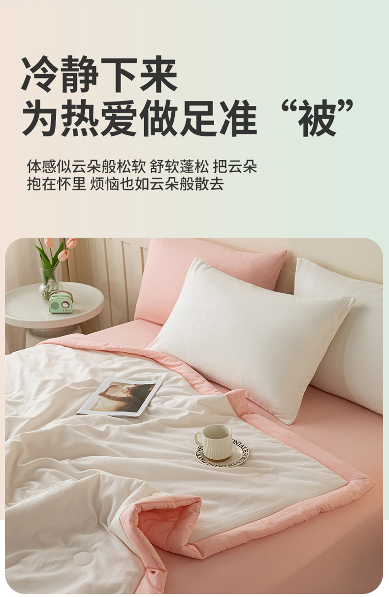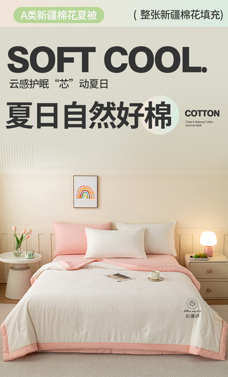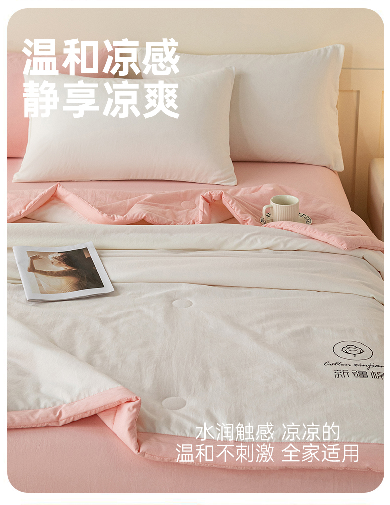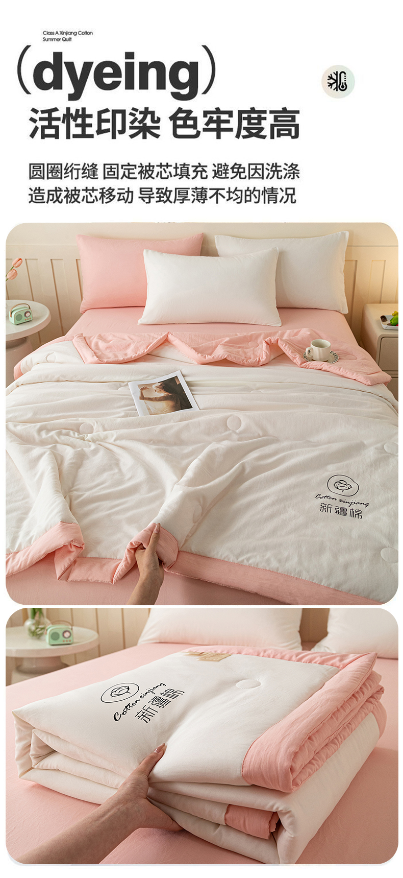 商品名称:几禾 2026春夏新款纯色水洗棉双拼夏被新疆棉花被夏凉被空调被被子被芯 双拼-白粉