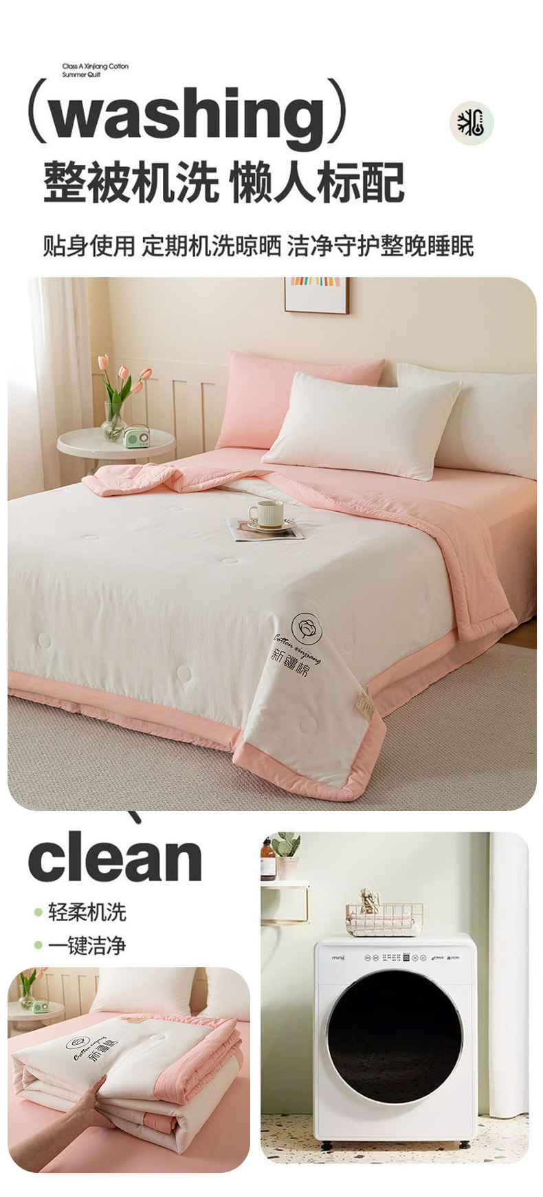 几禾 2026春夏新款纯色水洗棉双拼夏被新疆棉花被夏凉被空调被被子被芯 双拼-白粉