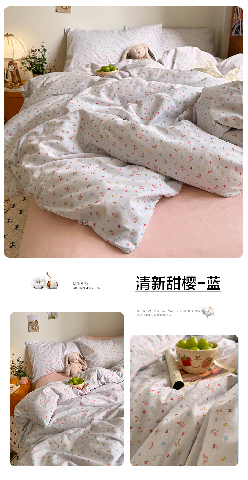 (总)艾咪-Amy ntmy 2026新款博主风清新田园小碎花全棉纯棉四件套-甜樱,清新甜樱-粉,清新甜樱-绿,清新甜樱-黄,清新甜樱-蓝