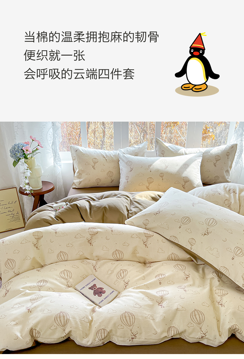当前位置: 91家纺网 > 商品网购 > 床品套件 > 四件套 > 全棉普通四件套 > 名兮家居 2026新款A类全棉棉麻四件套 热气球