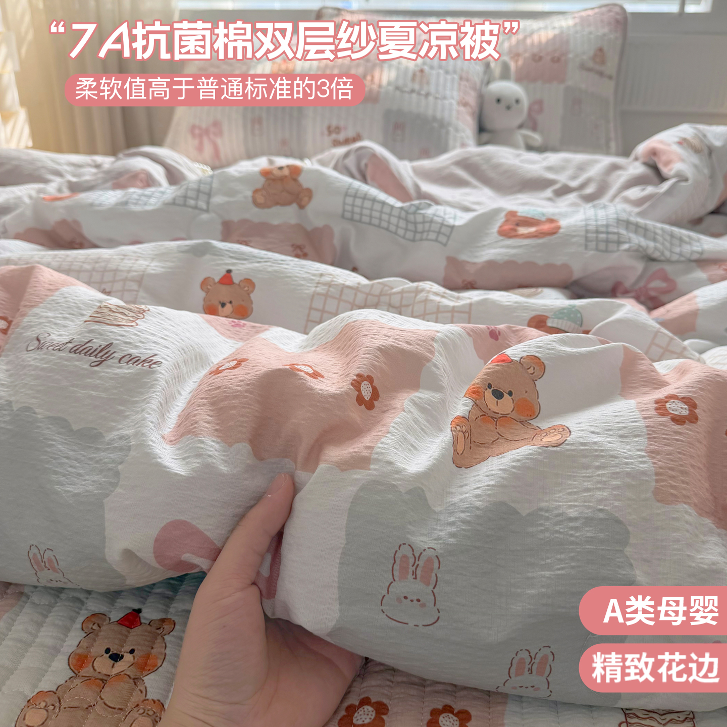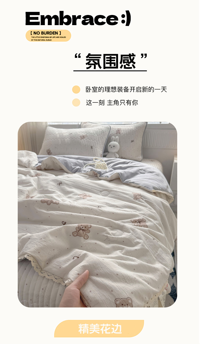 商品名称:悠米悠家 2026春夏新款木棉双层纱单夏被夏凉被空调被 可可萌熊