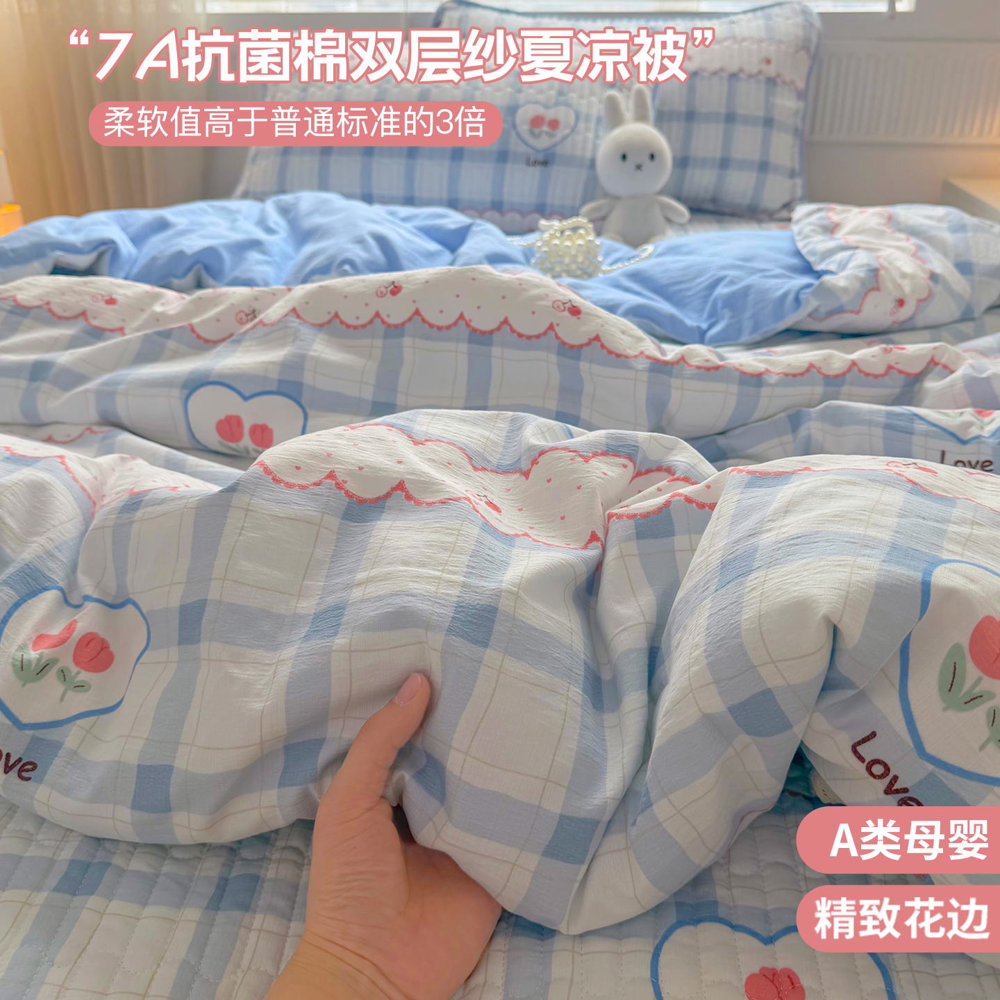 (总)悠米悠家 2026春夏新款木棉双层纱单夏被夏凉被空调被床盖四件套,Kitty·冬日甜梦,密语甜梦,松间花熊,青屿花园,赫本日记,格调蝶韵,雾岛花眠,花漾玫瑰,甜心Kitty日记,云樱格语,甜莓小熊,花漾萌宠,晨间花园,可可萌熊,萌趣派对,蜜熊絮语,南瓜田园记,奶咖小熊,趣味乐园,萌趣LABUBU,墨色花卉,星梦精灵仔,告白气球,海盐甜玫梦,温软蝶梦,云间小铁道,焦糖花境