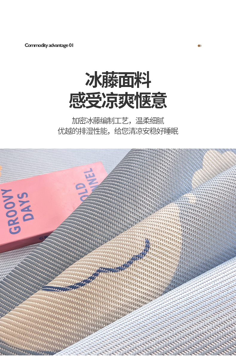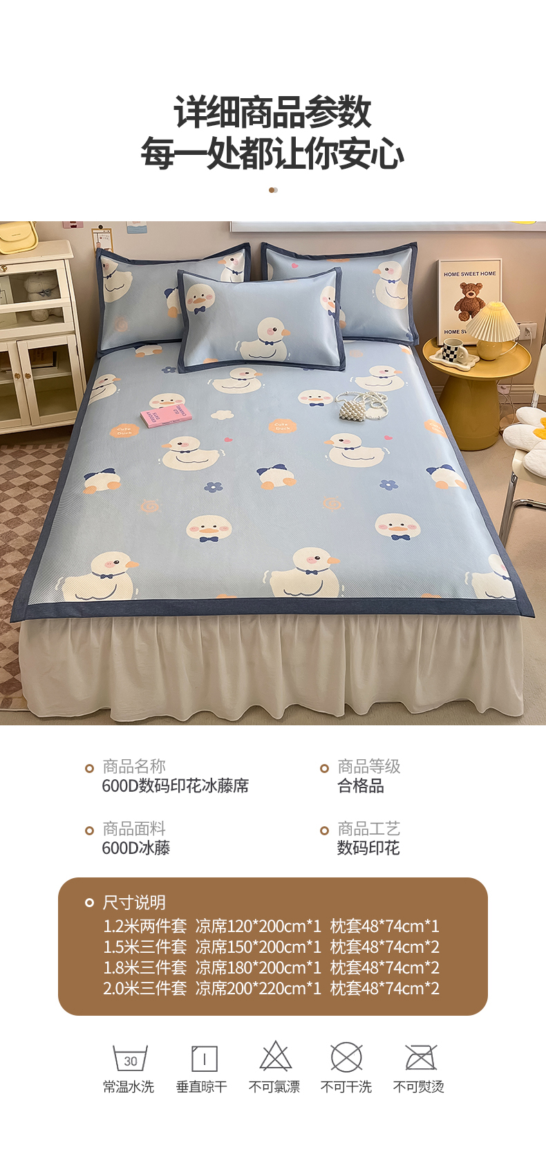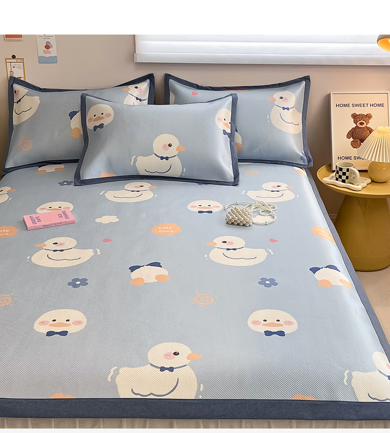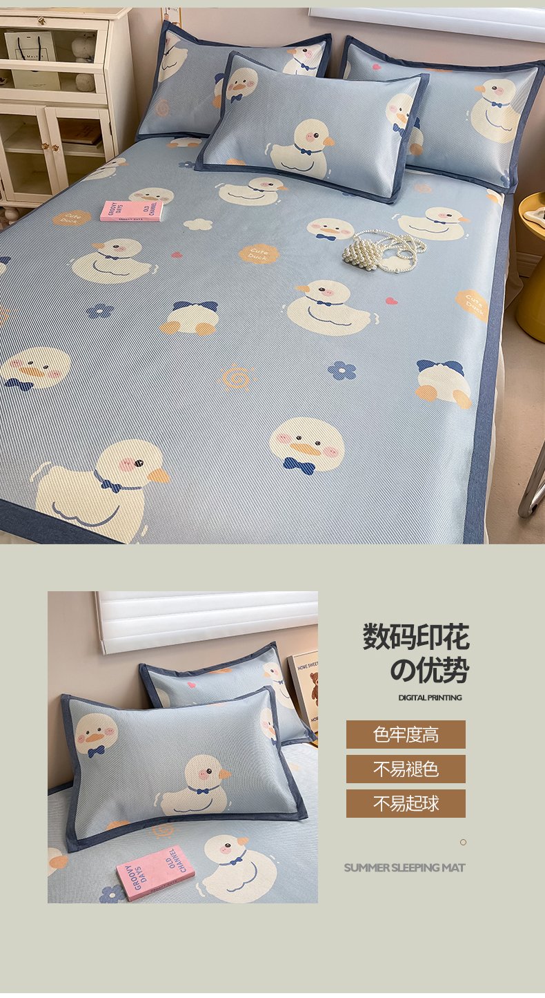 商品名称:懒猫家纺 2026春夏新款600D数码印花冰藤凉席席子-床席款 小鸭子